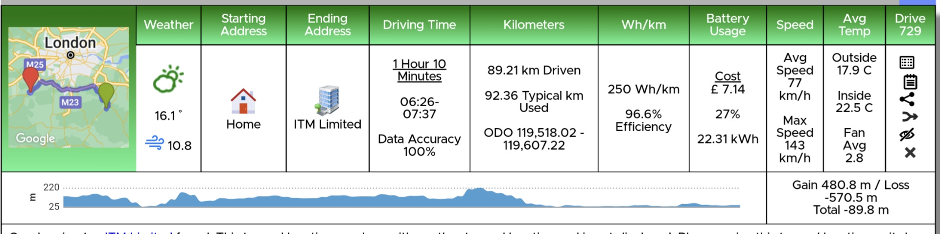 Результаты вполне убедительные. При низкой рекуперации средний расход на км. уменьшился. А эффективность поездки стала 100%
