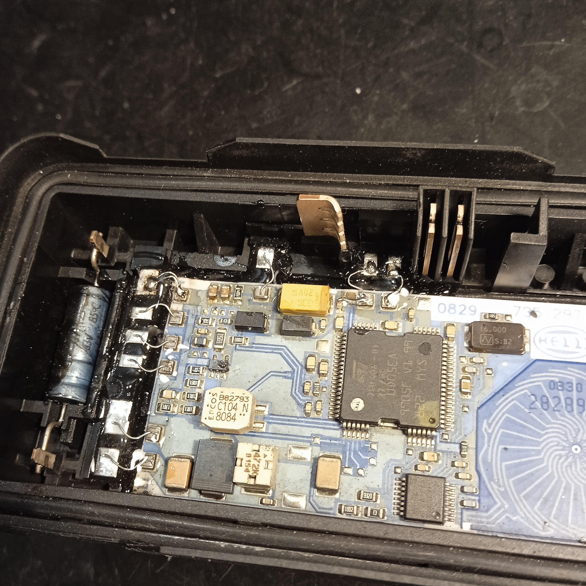 UPD: ремонта хватило ровно на два месяца. Видимо привод испугался отправки на войну и от этого у него отвалился один из ремонтированных контактов по питанию — тот что пропаян двумя проводками. На фото видно небольшое потемнение рядом с пайкой на пад печатной платы — это и есть остатки флюса, которые я принял за нагар и не стал слишком сильно вычищать. Пока ремонтировал оригинальный, на его место подкинул блок с алиекспресса, который, на удивление, даже заработал))) Порка езжу на нем, дальше по обстоятельствам.