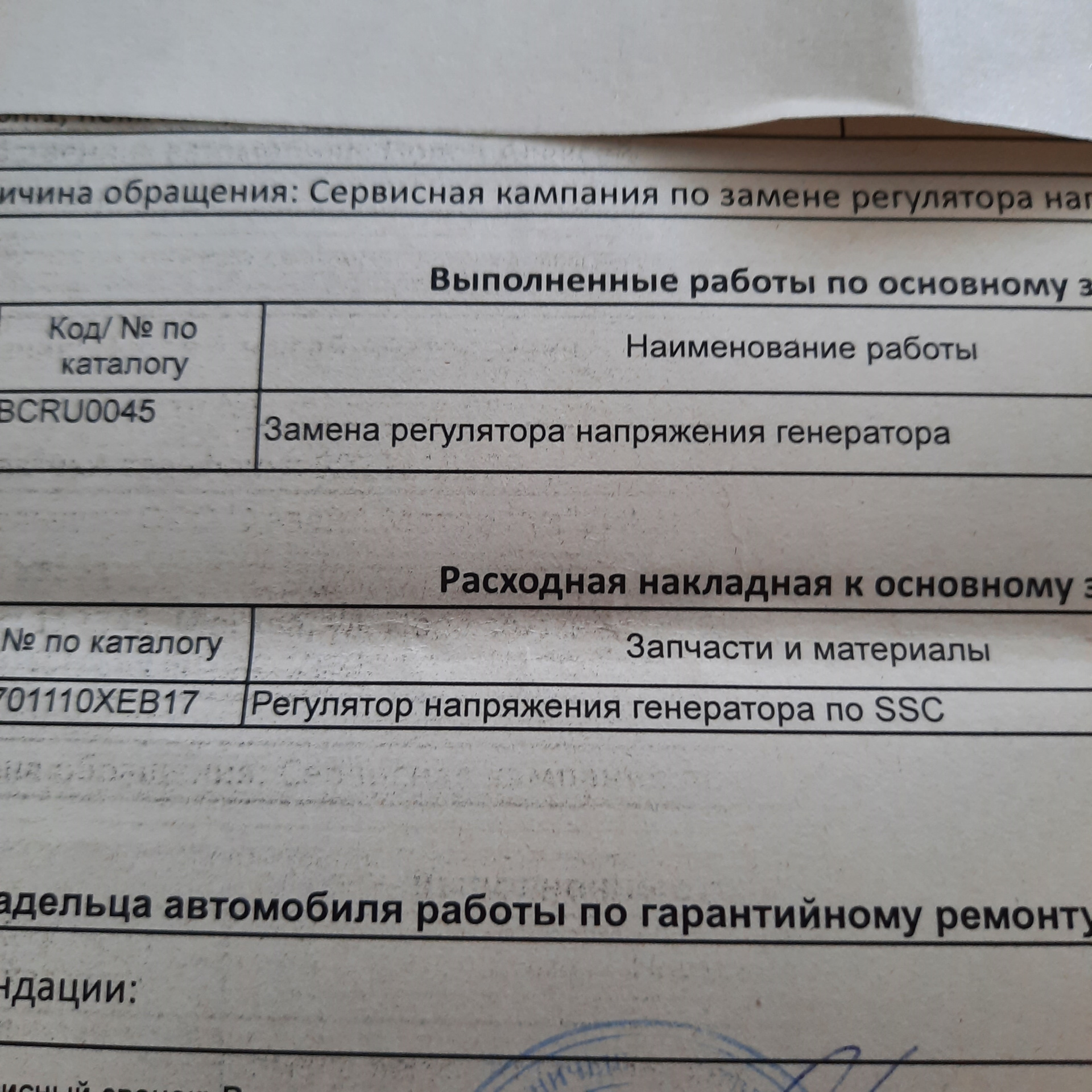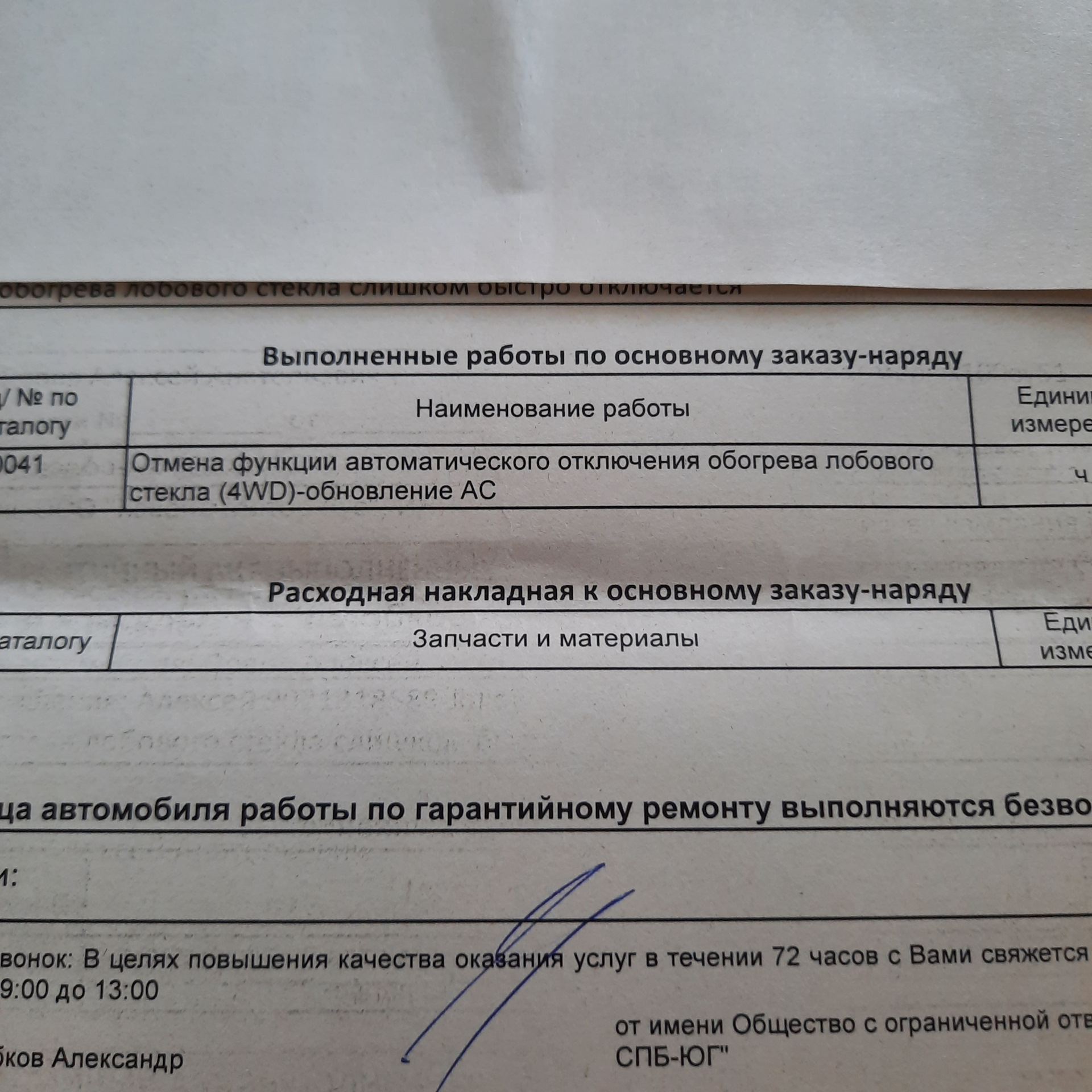 Находясь в отпуске было решено заехать в Санкт-Петербург, в автосалон Haval Юг. Где мне сняли ограничения автоматического отключения обогрева лобового стекла. Так же салон предложил заменить регулятор напряжения генератора по SSC по отзывной от Haval. Всё сделано очень быстро и качественно и конечно бесплатно. Теперь зимой в Мурманске буду кайфовать. В Мурманске в салоне Haval даже и не слышали об снятия ограничения лобоша
