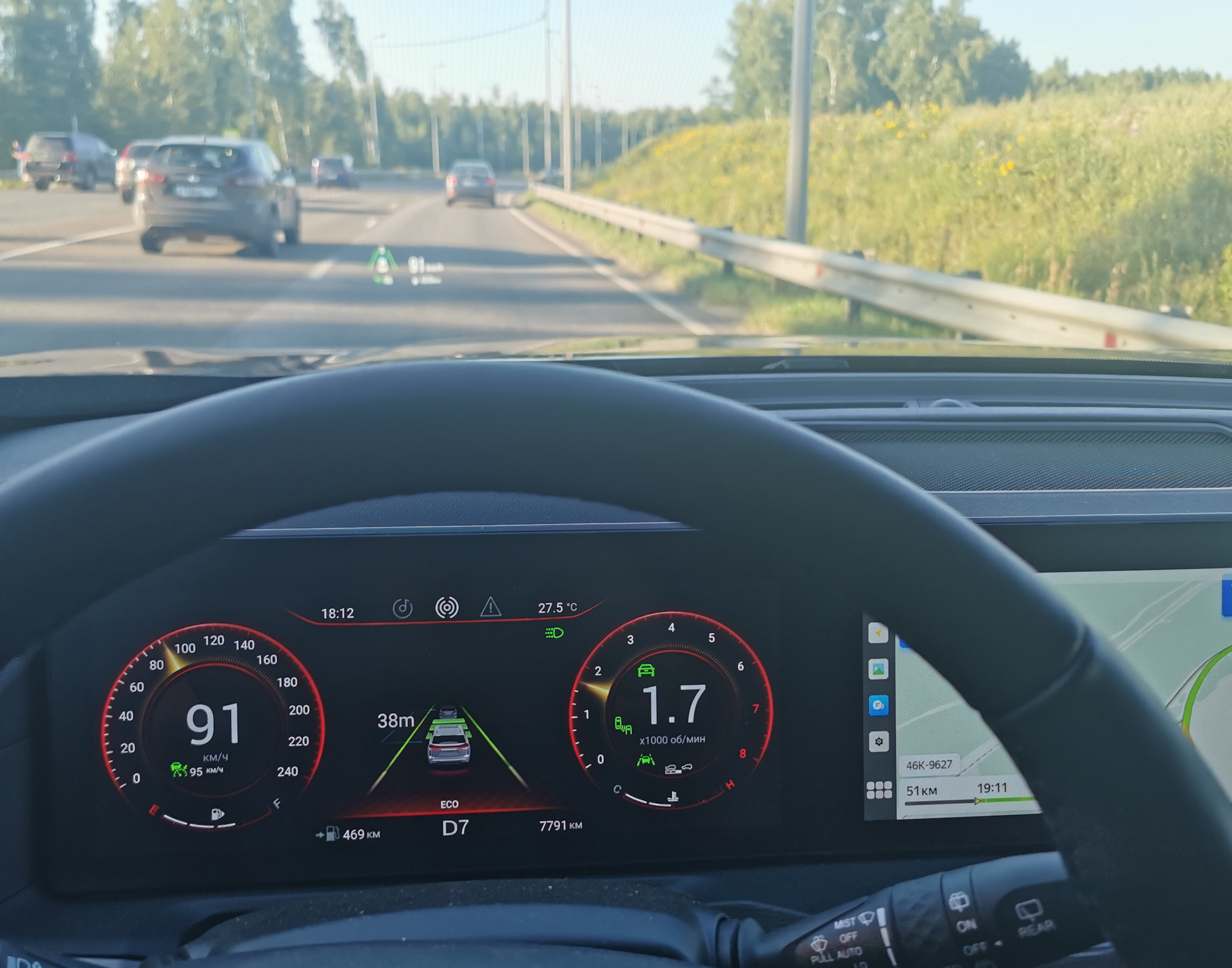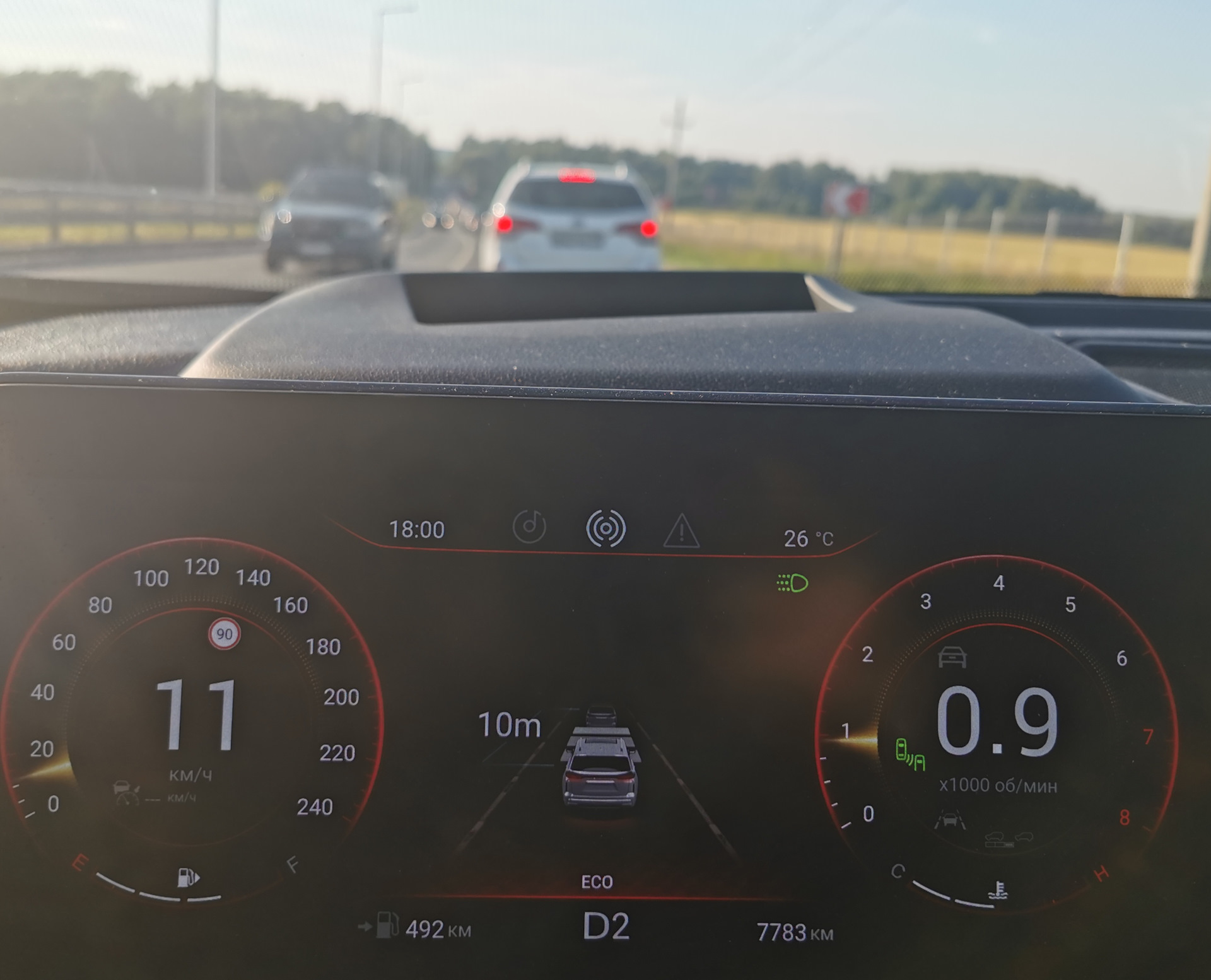 Из интересного, графически показывает дистанцию до впереди идущего авто (в метрах).