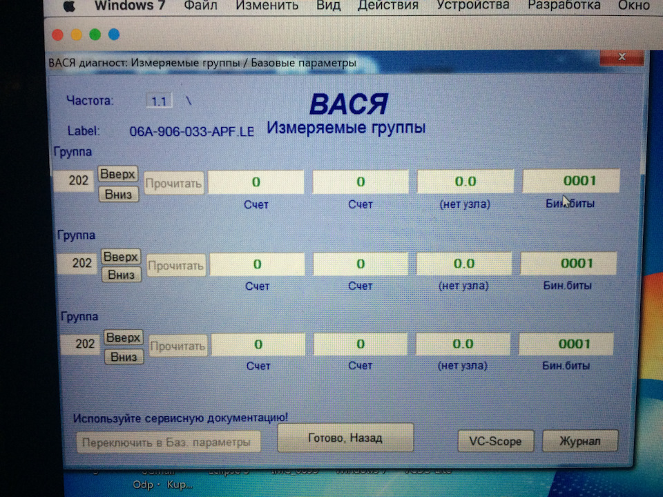 Измеряемые группы -> прописывает группу 202 -> прочитать- ноль эмоций, так же пытался прописать и 085-да и вообще потом сидел гонял эти цифра верх и вниз-ни какой информации-только на панели приборов да и то что и видно то и показывает. КПП вообще отказался вскрывать. И это при условии что мы смотали с него 100.000 км.пробега.