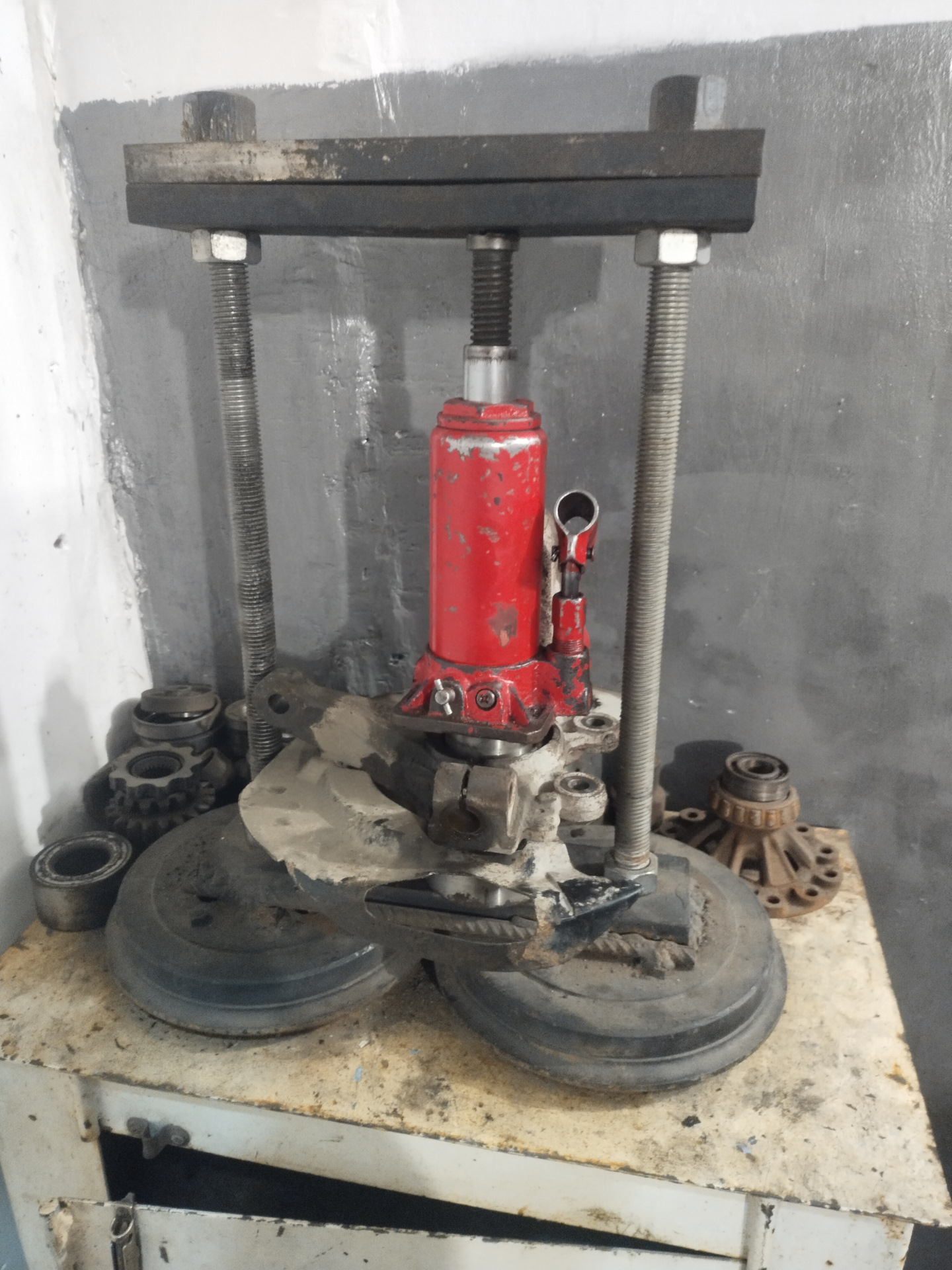 Скажу сразу что подшипник по началу не хотел никак срываться с места, мой самодельный пресс, который мелькал уже в предыдущих записях, трещал уже по швам и с шеститонного домкрата сходил седьмой пот, когда произошел заветный щелчёк и подшипник сдался.
