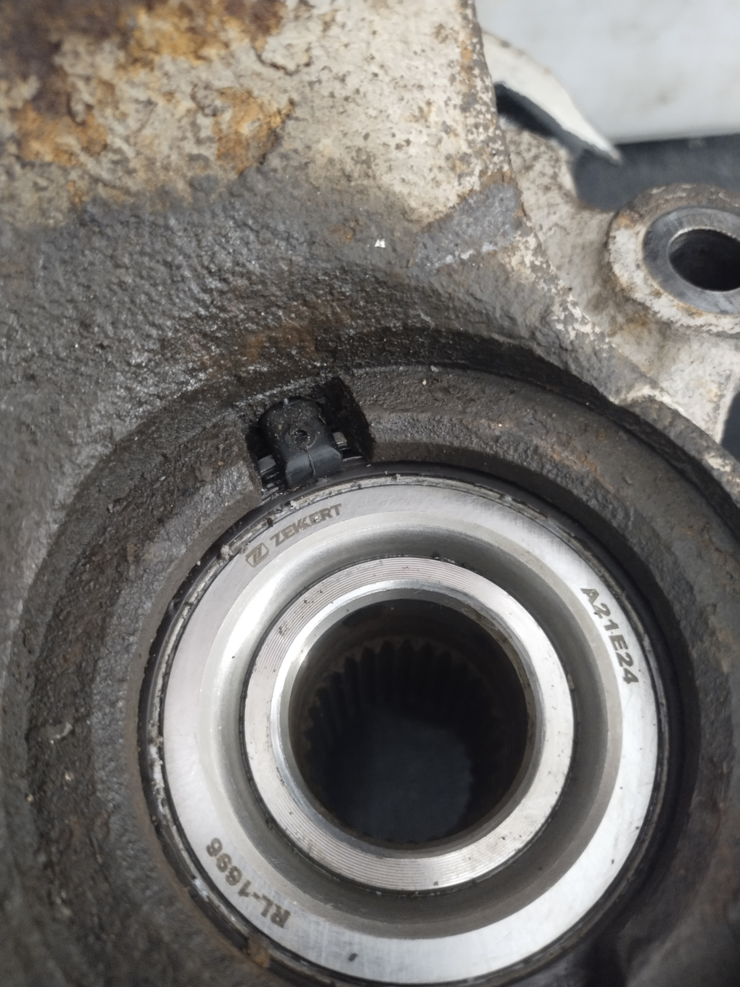 Уже сразу после запрессовки я увидел, что кольцо стоит не так как оно было установлено на старом подшипнике, датчик ABS не полностью захватывает плоскость.