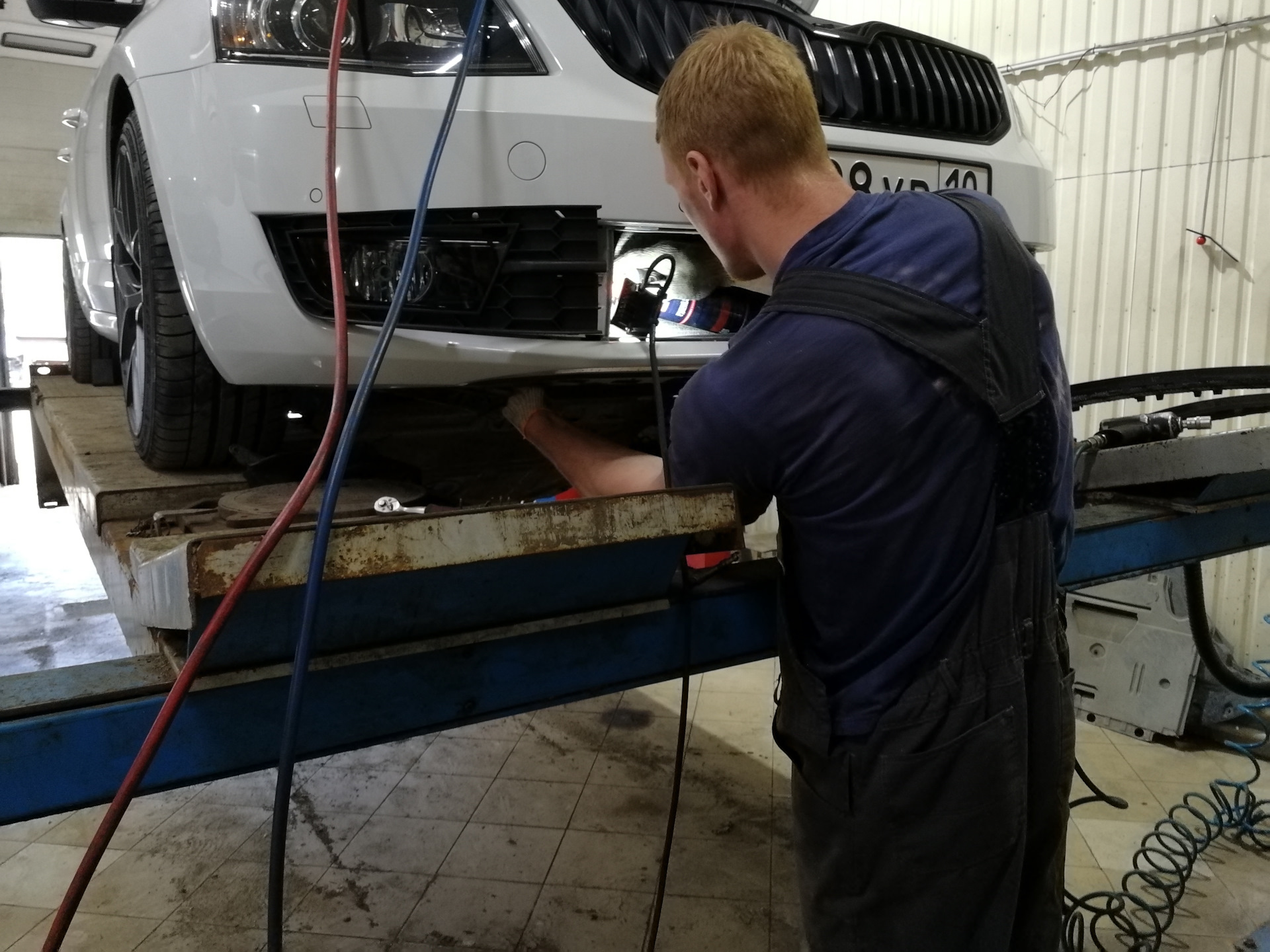 О том, что не нужно снимать бампер сказал сам дилер кстати, изначально в сервисе тоже сказали его снимать. Снимаешь защиту двигателя, болты пыльника и локер колеса частично, чтобы рукой был доступ, а так со стороны решетки бампера вполне все видно для контроля процесса