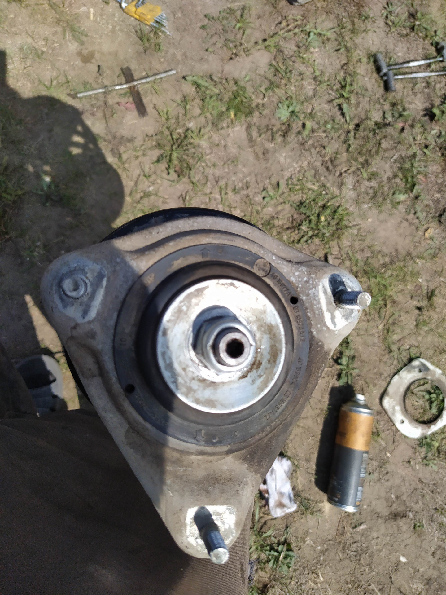 Опоры тоже родные, а вот этот грёбаный опорный подшипник ржавеет (причём ржаветь видимо начинает сразу после первой лужи) и года за 3-4 становится таким. Можно конечно смазывать раз в год, но по возможности закажу цельно пластиковый, он влияет только на вращение пружины и дискомфорт, когда она рывками издаёт звуки при поворотах (возможно на скорости может чуть чуть тянуть руль, если пружина будет залипать в натянутом состоянии).