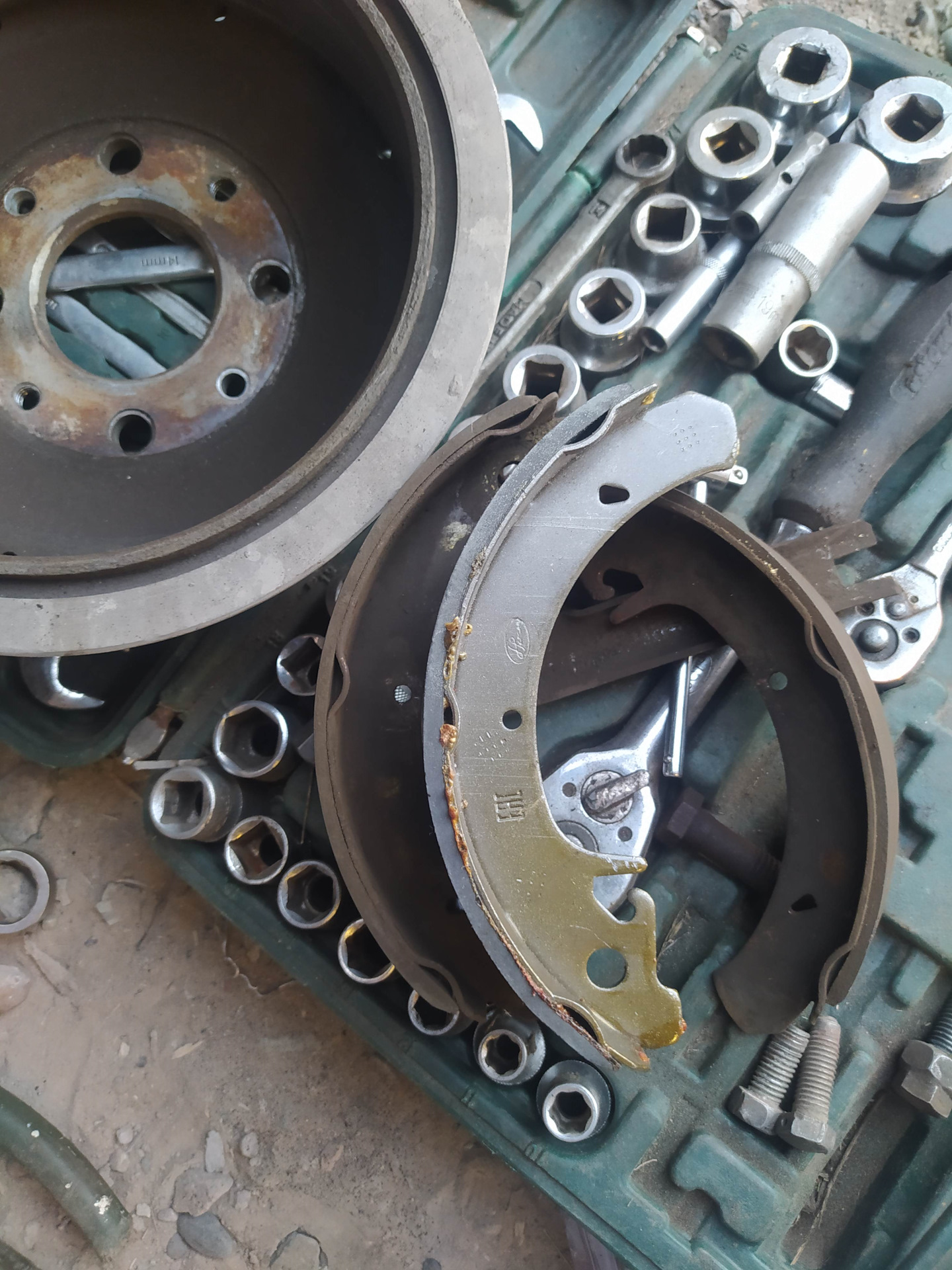 Потом в конце дня решил сменить задние колодки, но заморочился с ослаблением ручника, т.к. барабан не мог поставить на место. Без ямы удовольствие ещё то. Дольше провозился с ручником, чем с самими колодками.