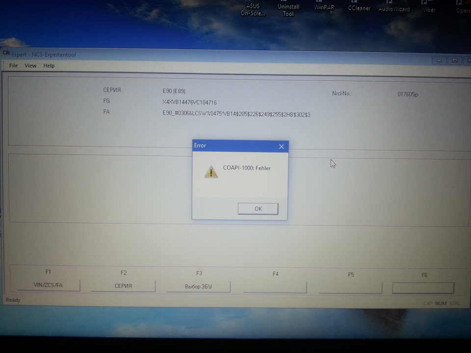 F1 "VIN/ZCS/FA" потом F3 "ZCS/FA из ЭБУ" выбираем кузов (E9x обозначаются как e89), в следующем окне выбираем CAS. После этого машина идентифицируется. Ждмем F6 "Back".