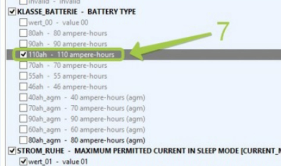 Ставим галочку напротив варианта, соответствующего новой батарее(в моем случае "110ah" (7)).