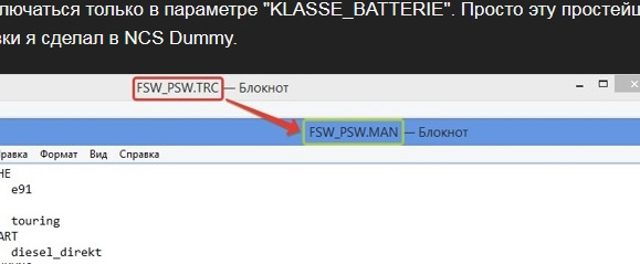 По сути, если сейчас зайти в папку Work и открыть файлы FSW_PSW.MAN. и FSW_PSW.TRC, то разница в них будет заключаться только в параметре "KLASSE_BATTERIE". Просто эту простейшую работу для перестраховки я сделал в NCS Dummy.