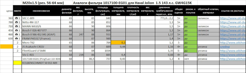 — сделать обзор на масляные фильтра 1017100-EG01 для Haval Jolion 1.5 143 л.с. GW4G15K