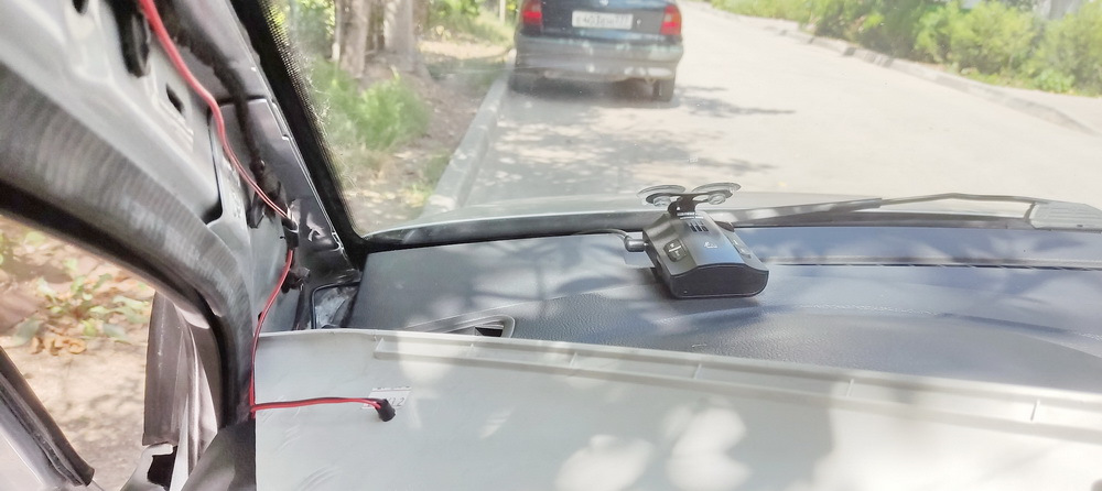 PS: Переставил радар над зеркалом заднего вида, работает четко. И так сказать скрытная установка.