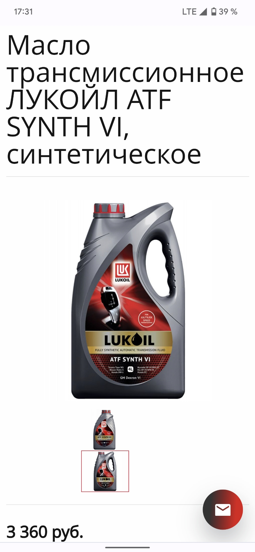 Масло залил ЛУКОЙЛ ATF SYNTH VI (подсмотрено у Mr-BelvikSpB ) так как цена приемлемая и вроде масло не плохо себя показывает в эксплуатации. По крайней мере мне не удалось найти негативных мнений на счёт данного масла, посмотрим как себя покажет, пока всё отлично. Приобретал масло в официальном интернет магазине Лукойл, 3 канистры по 4 литра, доставка СДЭКом была бесплатной.