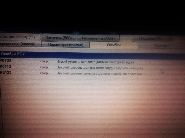 Затем подключили ноут на проверку ошибок и того что мы имеем, извиняюсь за качество фото я не брал с собой фотоаппарат.