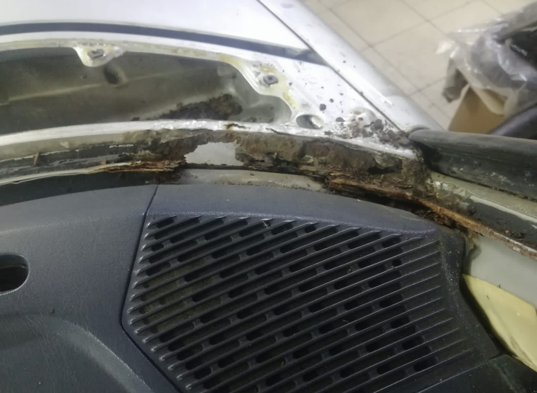 у меня с покупки след от камня на лобовом. купил уплотнитель, но менять стекло как-то рука не поднимается: вдруг варить. список на сварку уже очень приличный. подкрашивать кусками надоело, хотя уже наловчился баллончиком (краска, лак, шлифовка) так, что и не заметно