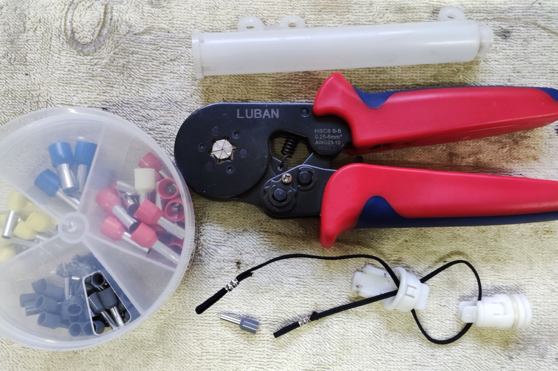 Нитка порвалась внутри белого цилиндра. Ищем подходящую крепкую. Я вытащил с форменной фуражки)). Кстати первый раз вижу, чтобы в фуражку встраивали нитки для утяжки под размер головы. Мне она все равно мешалась)). По структуре прям один в один с оригинальной, но только чуть толще. Чтобы сделать петельки как на родной, использовал обжимку для проводов и наконечник на 4 кв.мм.