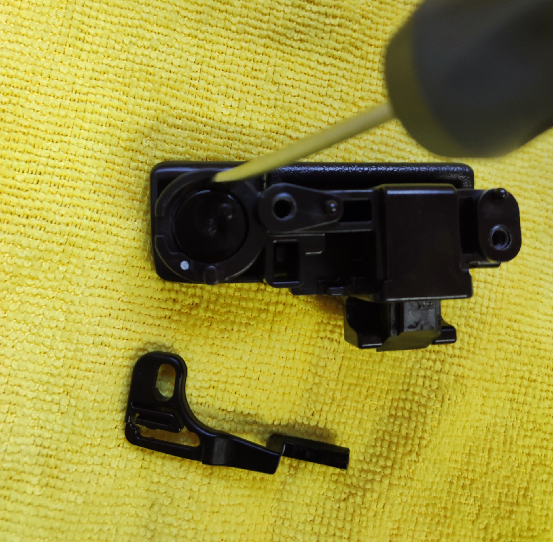Тонкой отверткой надавливает и вытаскиваем наружу механизм