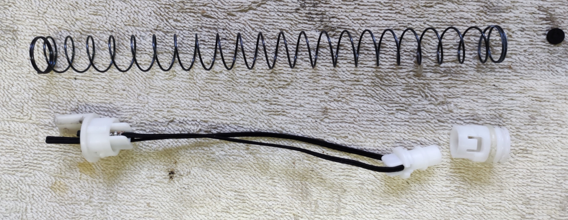 Важно — для начала делаем только ОДНУ петельку, просовываем ее в крышку и через поршень, затем через крышку снова и тогда делаем вторую петельку. Теперь начинаем танцы с бубнами))) и пытаемся собрать поршень, одевая пружину между крышкой и поршнем))). Заодно развиваем мелкую моторику пальцев))). Минуты за 4-5 у меня получилось)).