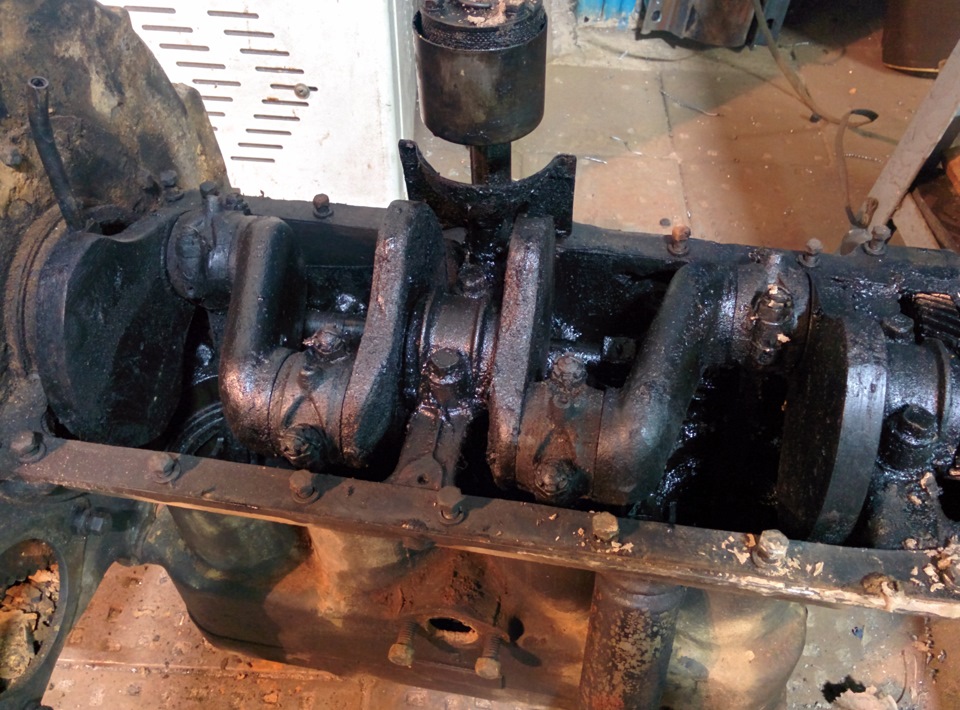 Пользовались литературой для ремонта 30 — 40-х годов. Знаю, что был сломан масляный шестеренчатый насос, находящийся внутри двигателя. Все детали, находившиеся в смазке, сохранились хорошо. А вот со шкивами хуже. В действующих гостах нет таких типоразмеров. Были смоделированы, изготовлены шкивы и подобран современный ремень 14*1100 мм.
