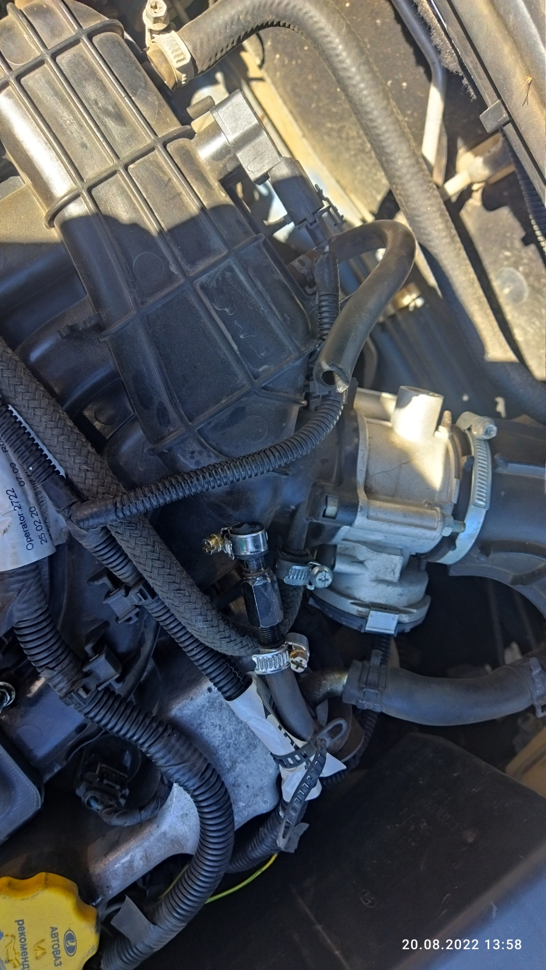 под рессивером, который от электромагнитного клапана, я поменял шланг, там был растресканый. поставил силиконовый от классики, шланг опережения зажигания.
