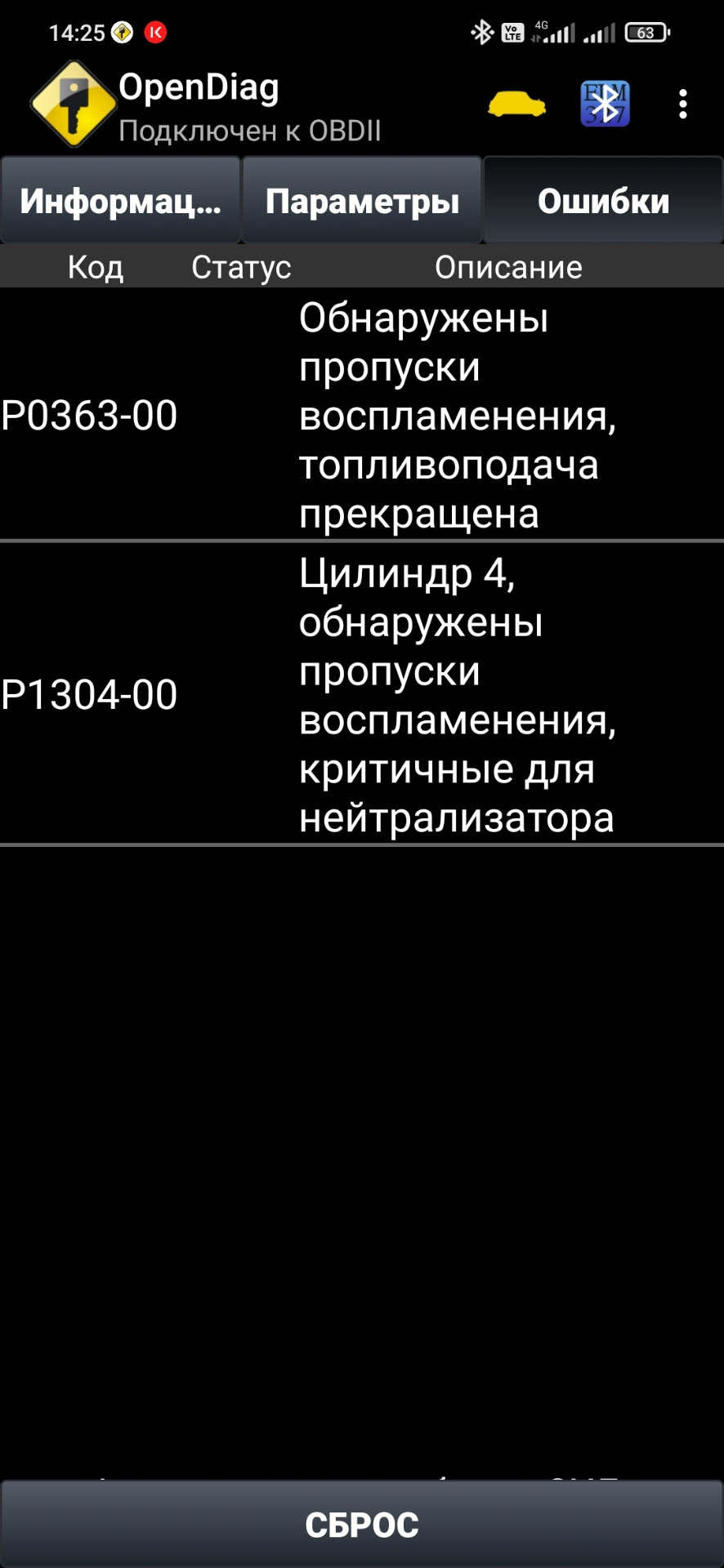 P0363 — следствие ошибки Р1304 и не надо искать в ее появлении никаких подвохов. Как только устраните причину пропуска воспламенения в цилиндре, то и этой ошибки не будет.