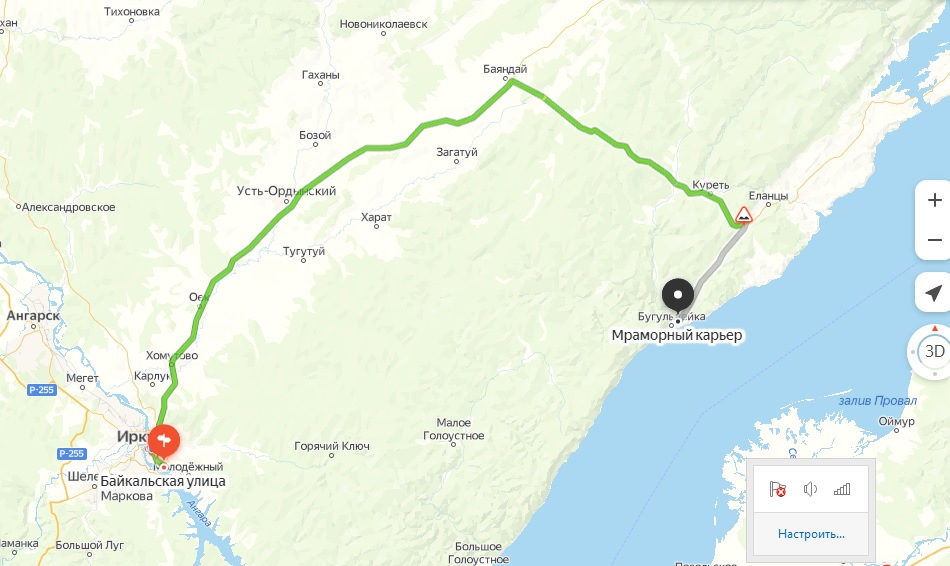Машрут от дома до карьера около 236 км. Ехать надо по трассе Р418 до Баяндая, а потом уходить в строну Ольхона, но не доезжая его сворачивать в сторону деревни Бугульдейка. Карьер находится около въезда в эту деревню, в ней же есть и выезд к озеру Байкал.Сначала проезжаем деревню Хомутово, трасса не сильно загруженная, фур не встретил вообще, не одной, только грузовики и автобусы. Машин тоже не так много.Стелла с надписью Усть-Ордынский Бурятский автономный округ.посёлок Усть-Ордынский с всадником на коне на въезде. Сделано прикольно!В начале пути был лес, но далее пошли поля, степи. Леса нету, очень было непривычно ехать, когда дорогу видно на десятки километров вперёд. Как человек, который прожил большую часть жизни в тайге, в городе Усть-Илимске, мне это непривычноДалее мы въезжаем в Баяндаевский район. Да, тот чел на фотке встал и загородил букву А. Не сразу заметил даже, туристы они такие))Летим дальше по полям и степям. Где то иногда попадаются куски лесаОчень красивые виды, пока ехал залипал конкретно.А вот и сам Баяндай. Котлеты и вся мясная продукция у них конечно вкусная, но дорогая))Далее на Баяндае сворачиваем на дорогу уже до самого озера Ольхон, а точнее до водной переправы на него в селе Сахюрта.Не доезжая до Сахюрты 55 км сворачиваем на дорогу в сторону деревни Попова.И тут кончается через буквально 2 км мой кайф поездки по нормальным дорогам без ям. Асфальта как я понимаю тут никогда и не было, и сначала я даже огорчился, ведь до каньона ехать целых 30 км…плакала моя подвеска. Но! что удивительно, после поездки по этой дороге стало ясно — дорогу раскатали и видимо отгрейдировали настолько — что эта дорога лучше чем половина асфальтированных дорог в г. Усть-Илимске, где тупо яма на яме… есть места конечно где будто проехал бульдозер и наделал стиральной доски, но основные 25-28 км дороги до конечного посёлка Бугульдейка можно ехать смело 60-80 км/ч это и то — с моей жёсткой подвеской! Очень всё это удивило меня…По пути до посёлка Бугульдейка встретились пешеходы, которые очень хотели устроить ДТП)Ещё ехать и ехать…мазда наверное думала — где я чёрт возьми, куда меня занесло…И вот — преодолев 30 км гоночной трассы наконец то — Бугульдейка. Где то здесь тот самый Мраморный карьер.Виды конечно у них тут…глаза просто в шоке)Скалы, поля, речка — куча коров, есть даже сурки! везде норыСначала решил проехать через посёлок к Байкалу.Куда не поедешь — всё равно приедешь на Байкал. Очень атмосферно всё выглядит!Много где на берегу лежит мрамор, он к слову — по всему посёлку раскидан.Далее возвращаемся на въезд в посёлок Бугульдейка и приезжаем на тот самый Мраморный Карьер. Место очень интересное — особенно после изучения информации о нём, всё это месторождение сделано природой! И таких крупных месторождений всего 2 в мире!Высота карьера — этажа 3-4 примерно, возраст — около 2 млрд лет. Месторождение появилось задолго до образования самого озера Байкал!Месторождение эксклюзивно ещё и тем, что местный мрамор — один из самых качественных, из него делали статуи и т.д. но на данный момент это месторождение в резерве, работы там не ведутся, хотя чтобы приобрести мрамор — всё же можно взять на это разрешение.Ну и конечно же не обойдётся без ребят, которые любят написать на глыбах белого красивого мрамора что то типа — ЧИТА 2022 и т.д. выглядит это убог