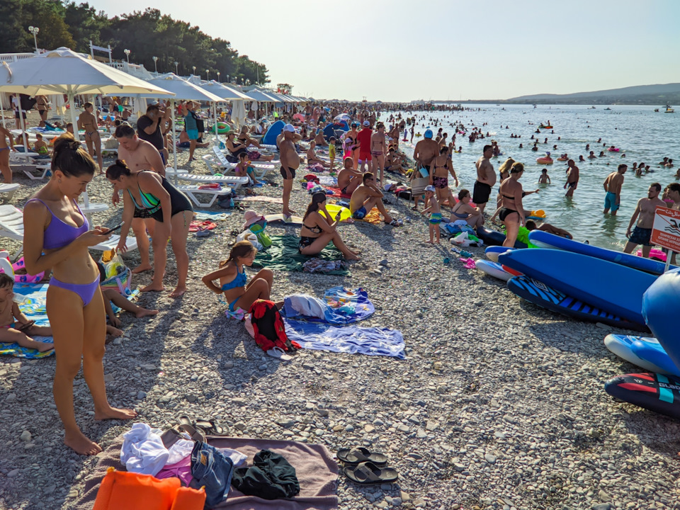 Ну и фото с пляжа: на нем народу, как на трассе перед городом…