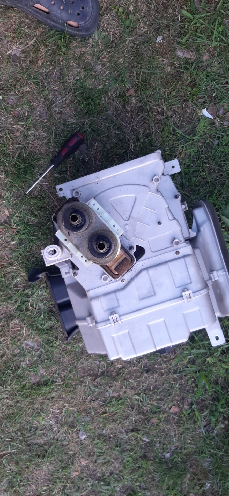 Всем привет. Решил снять радиатор печки и почистить так как зимой еле грела. По снятию печки информацию можно найти на драйве. Единственное отмечу не нужно снимать панель приборов она снимается вместе с торпедой, а торпеда в свою очередь держится на 8 болтах четыре из них посередине внизу, где находится ЭБУ. Проводка вся отщелкивается. Значит снимаем весь пластик слева и справа, посередине где рычаг КПП, потом откручиваем торпеду, после снимаем вентилятор, радиатор кондея и блок с печкой и вытаскиваем вместе с радиатором.
