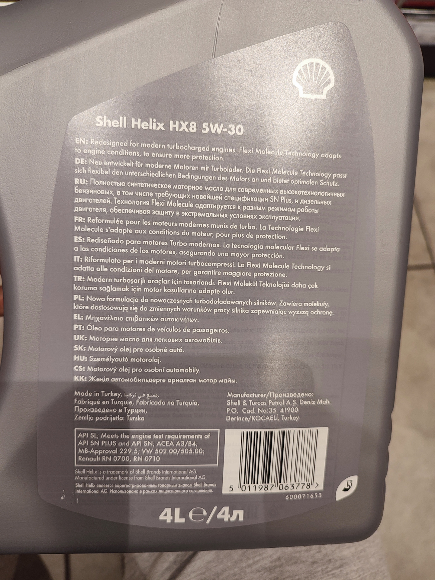Shell 5w-30 HX8, знаю что в Турции продаётся качественный Шелл, друг в Турции такой заливал в Тигуан, и именно тот что был куплен в Турции, на нём мотор намного тише работает