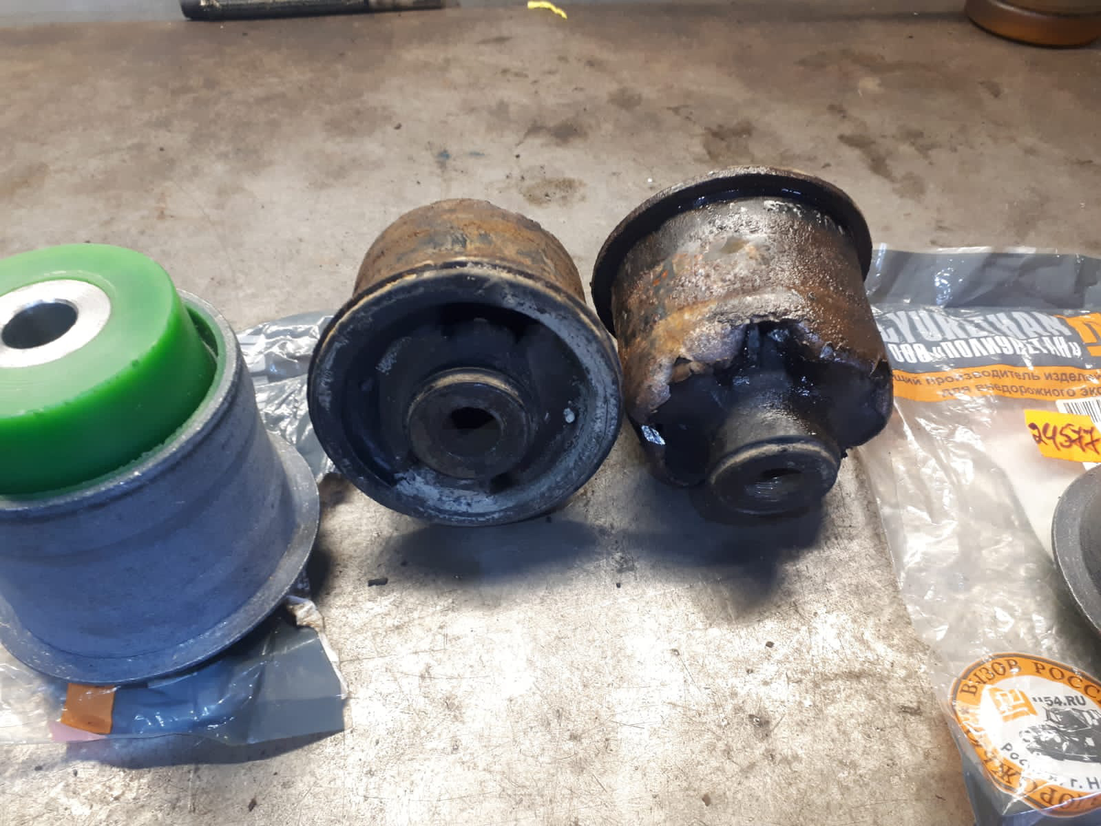 не верю я в это все … ну ладно в задней там будет оно вращаться и "скрипеть" на морозе . но вот передний рычаг, там хоть что делай но там изгиб, а уретан не работает на изгиб совсем . по той же причине и линки это тоже говно .