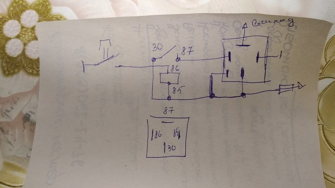 Подаём на один из контактов катушки (86) наш «плюс» (с концевиков автомобиля). На другой контакт катушки (85) и на контакт 87 подаём «минус». В итоге на выходе (контакт 30) получаем нужный нам «минус».