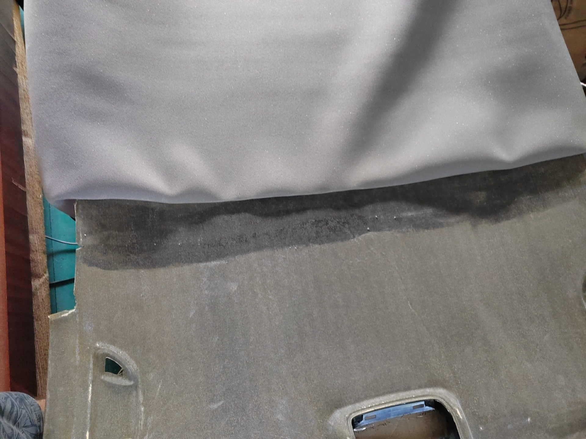 Наконец-то мои кривые руки дошли до самой перетяжки. Как-то сильно затянулась работа над крышей, ну да ладно. Как вы могли понять из моей самоиронии, обошлось не без проблем. Не то, чтобы я потолок совсем запорол, но косяков достаточно. Будем считать, что это опыт. К тому же, я был к этому морально готов, т.к. изначально не нашел ткань в цвет и собирался в дальнейшем все переделывать.