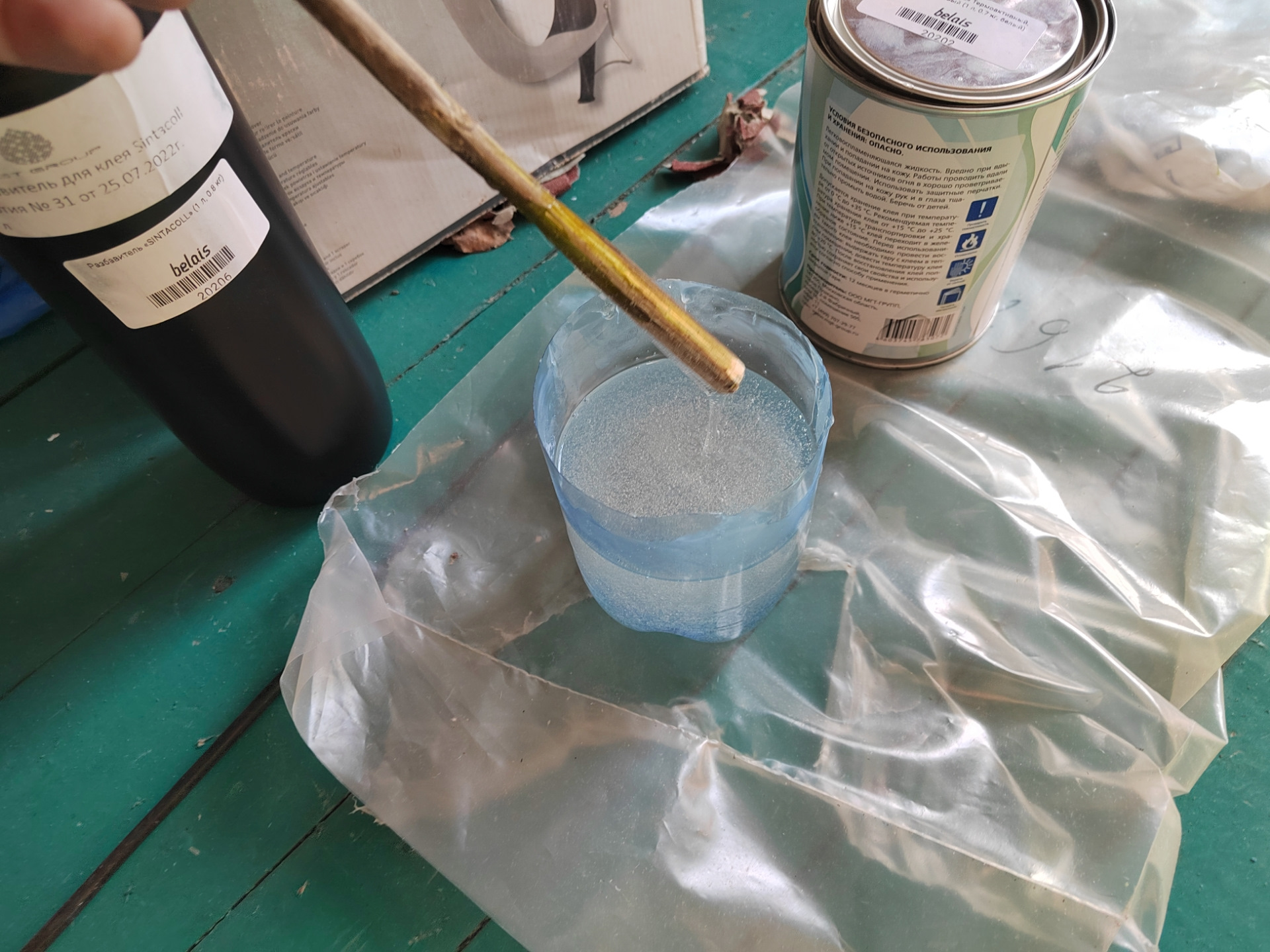 Прошелся еще раз наждачкой по проблемным местам, обезжирил всю поверхность, подождал минут 10 и начал замешивать клей.