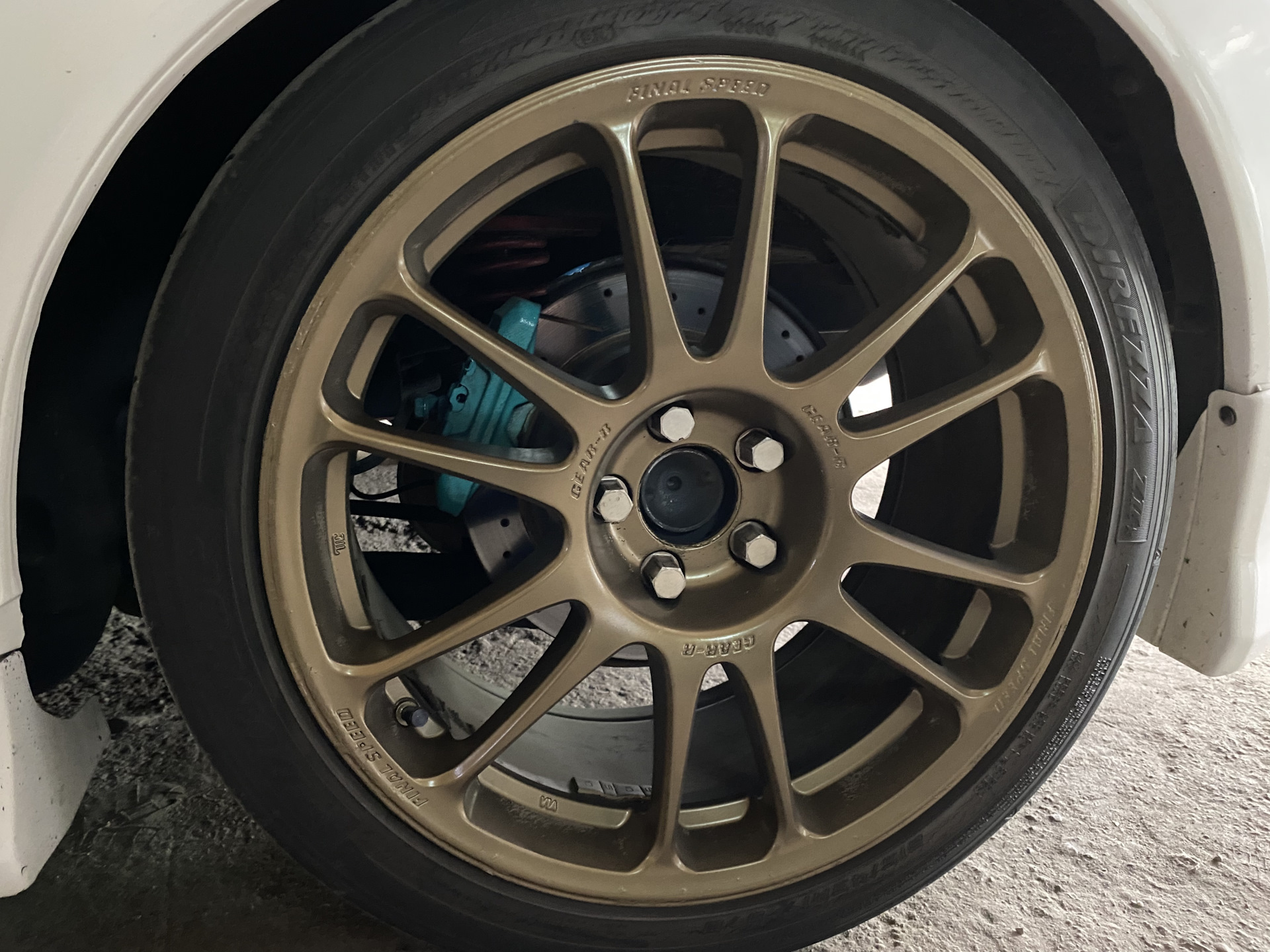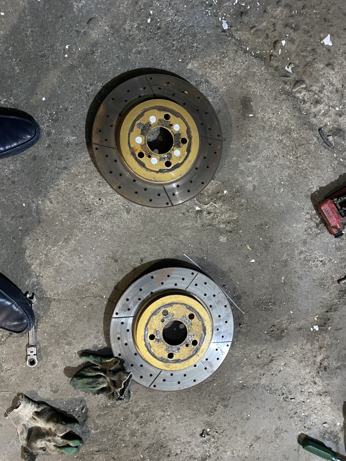 Напомню что сзади стоят тоже диски с насечками и перфорацией, ноунейм с распила, и спорт колодки Endless. Сразу скажу, в таком конфиге у тачки не перетормаживает морда, отлично останавливается для своей тонны веса))