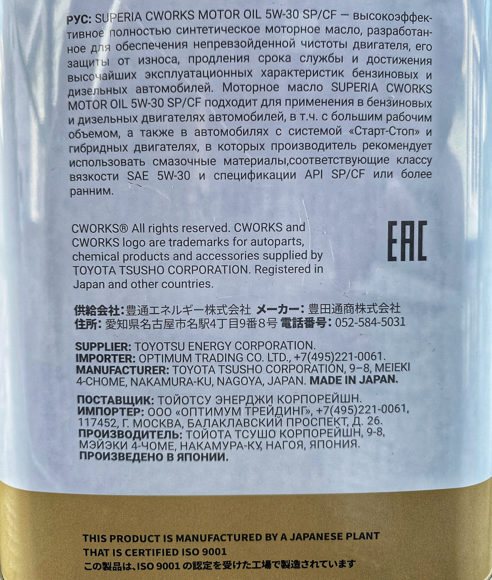 Ну вообще то все классификации масла — не имеют к России отношения. Чтобы Россия выпустила масло на продажу, его нужно отправить на анализ… Не в Россию… Чтобы получить определенный допуск. Вот так.