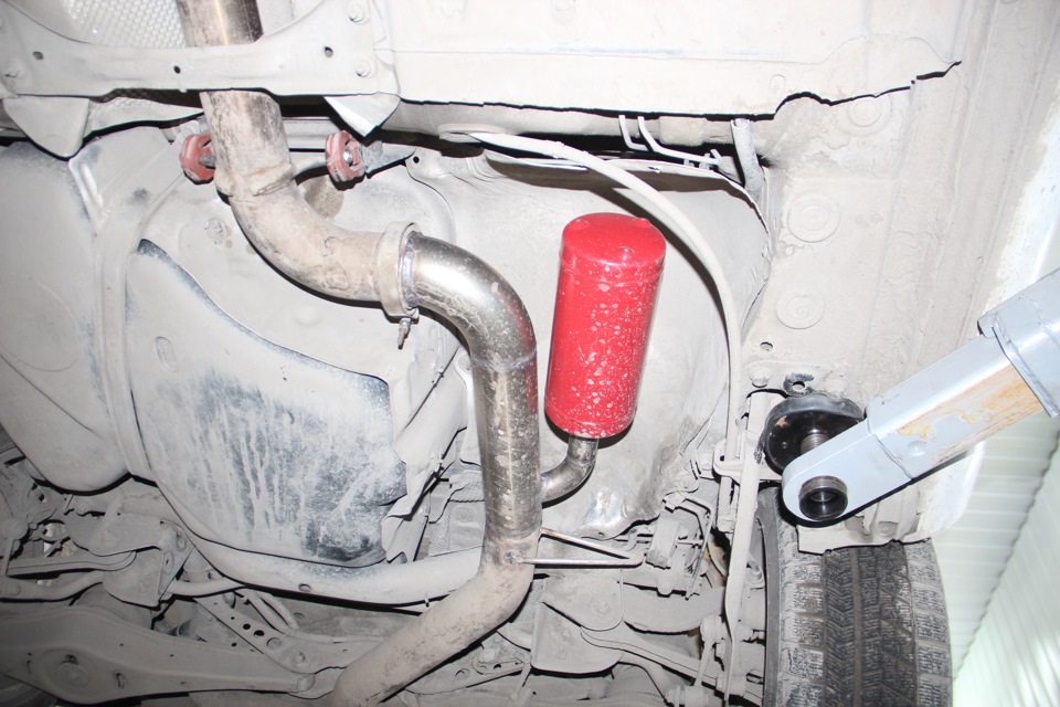 а если такую емкость запилить вместо катализатора на стоковый выхлоп? звенящий звук выхлопа достал.