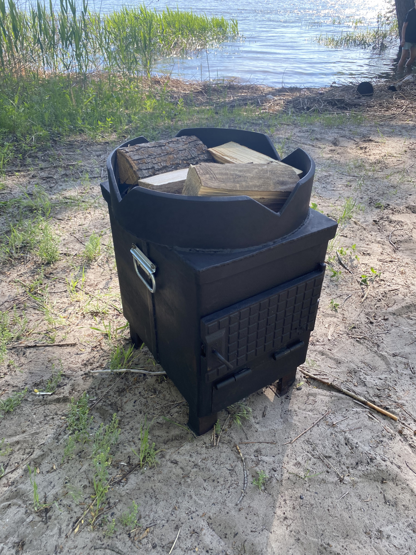 У меня у друга модуль, УАЗ буханка называется🤣 Вот такую печку походную он соорудил, снял крышку, превращается в мангал🤣 У-универсальность!