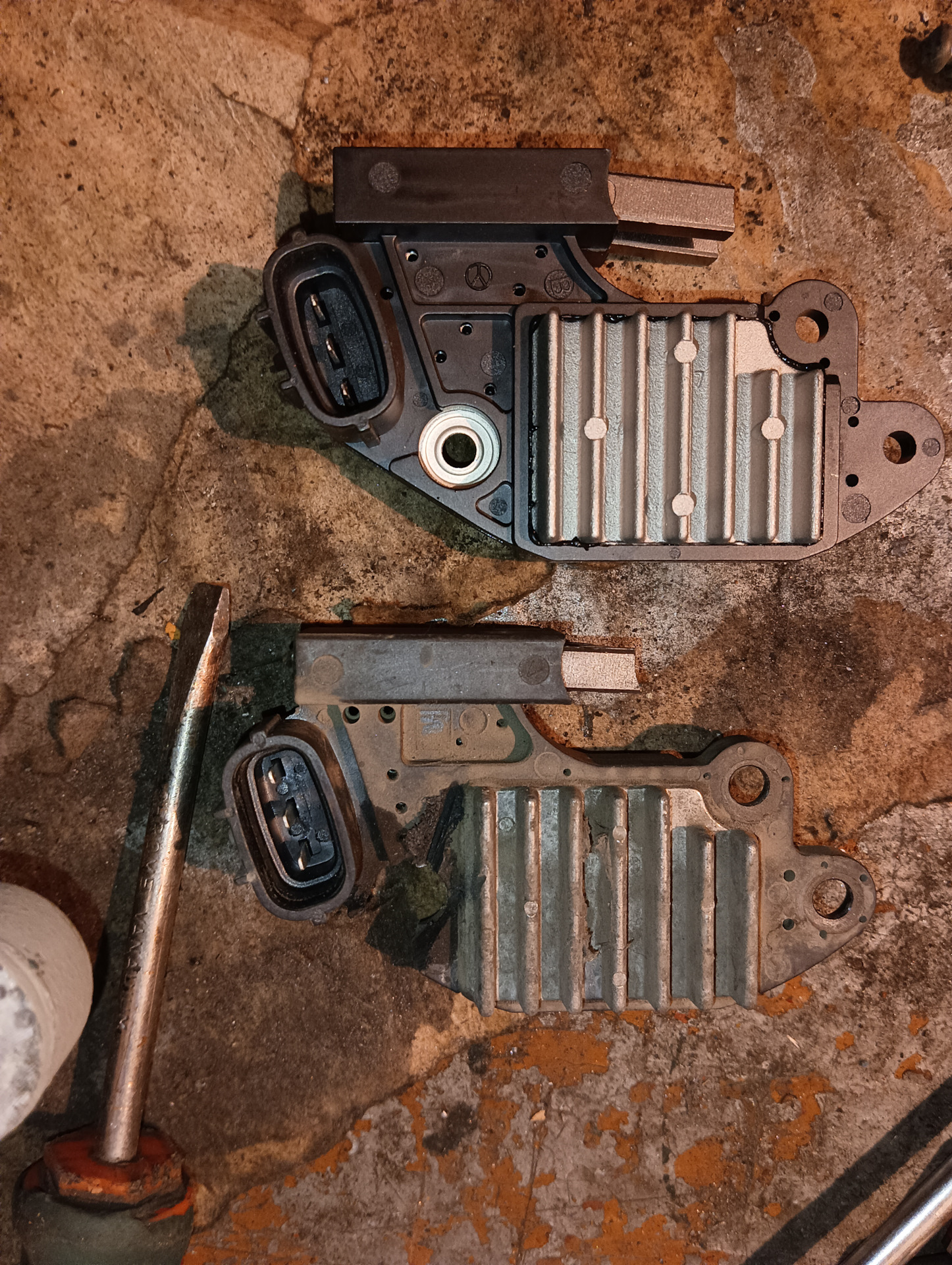 Первое — заказал шоколадку RQ9385A. Она подходит на генераторы с тремя диодами (обозначил на фото зеленым кругом).