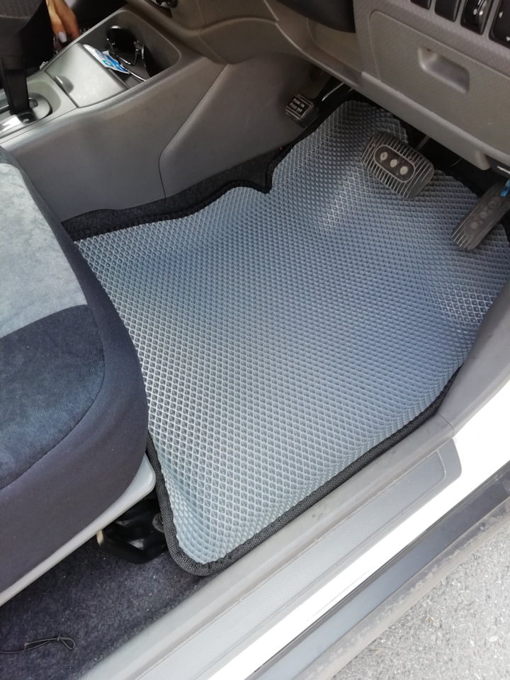 В общем позвонил в одну из многочисленных компаний, занимающихся EVA коврами. Ее особенность в том, что ковры там делаются только по автомобилю с учетом пожеланий клиента. Мое главное пожелание было простым — закрыть площадку для левой ноги и сделать бортики. Сказано — сделано, приехал и за час все сделали.