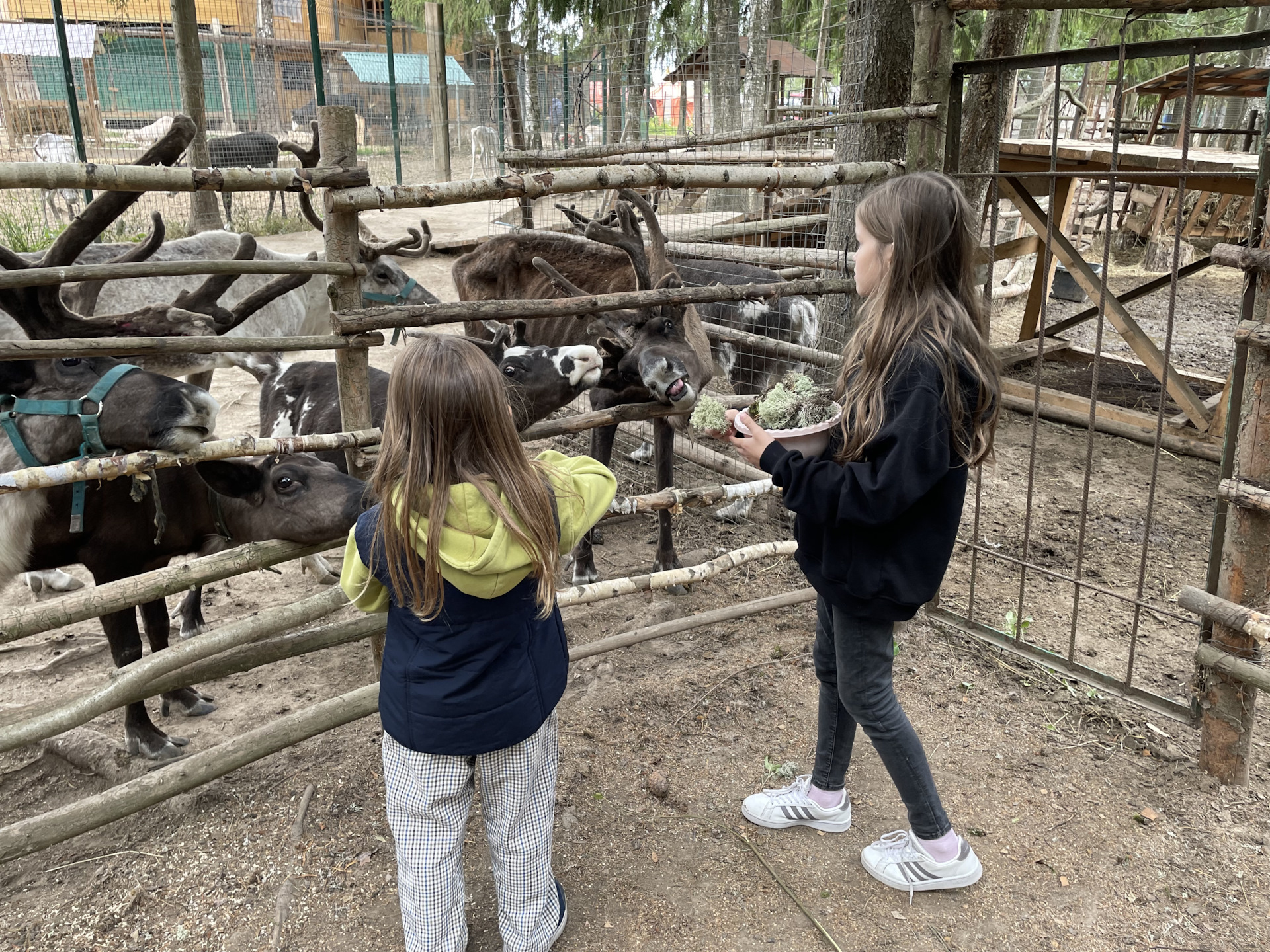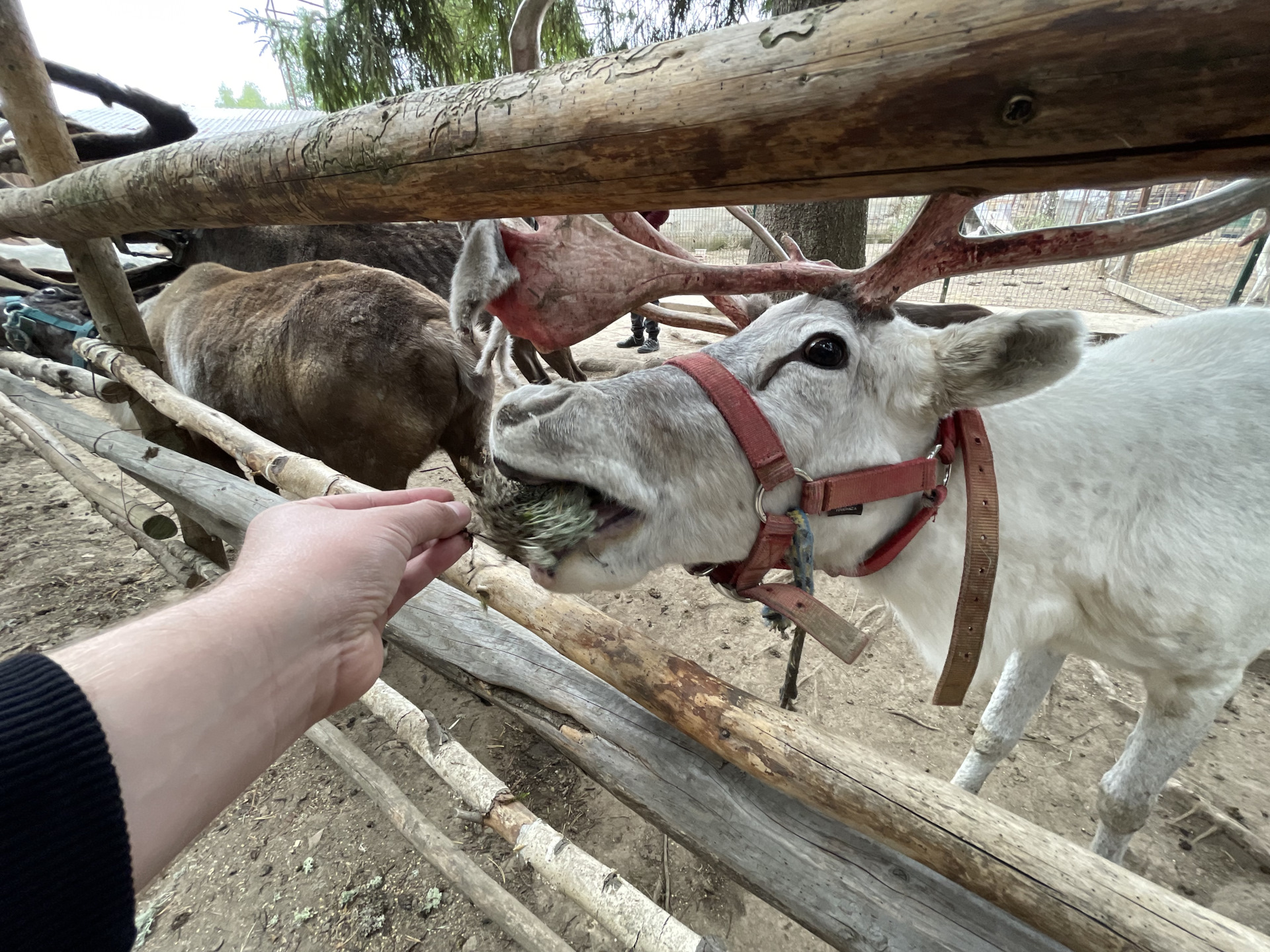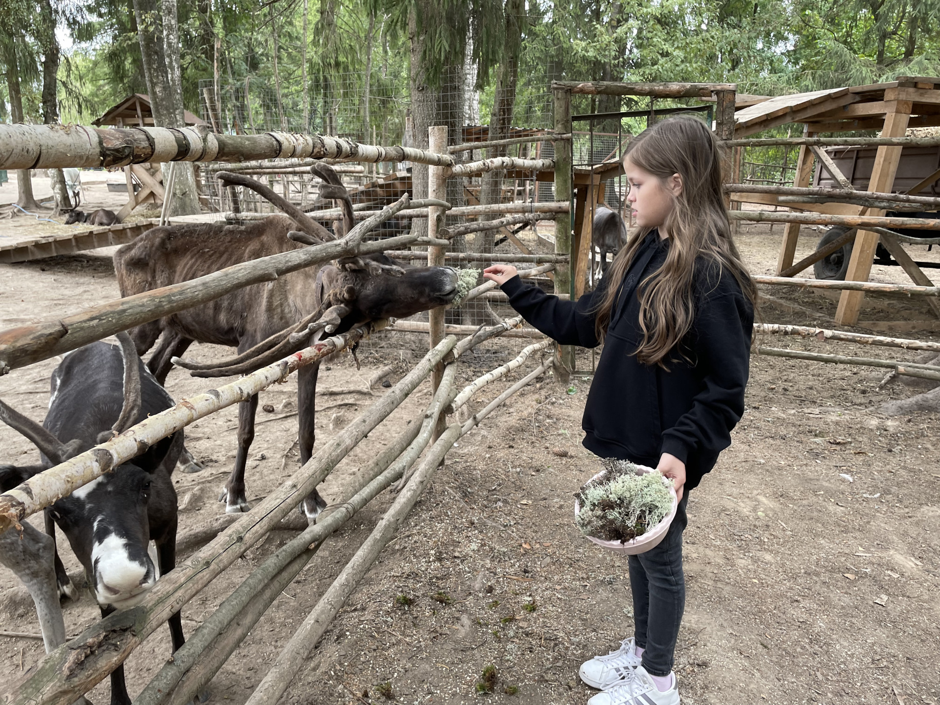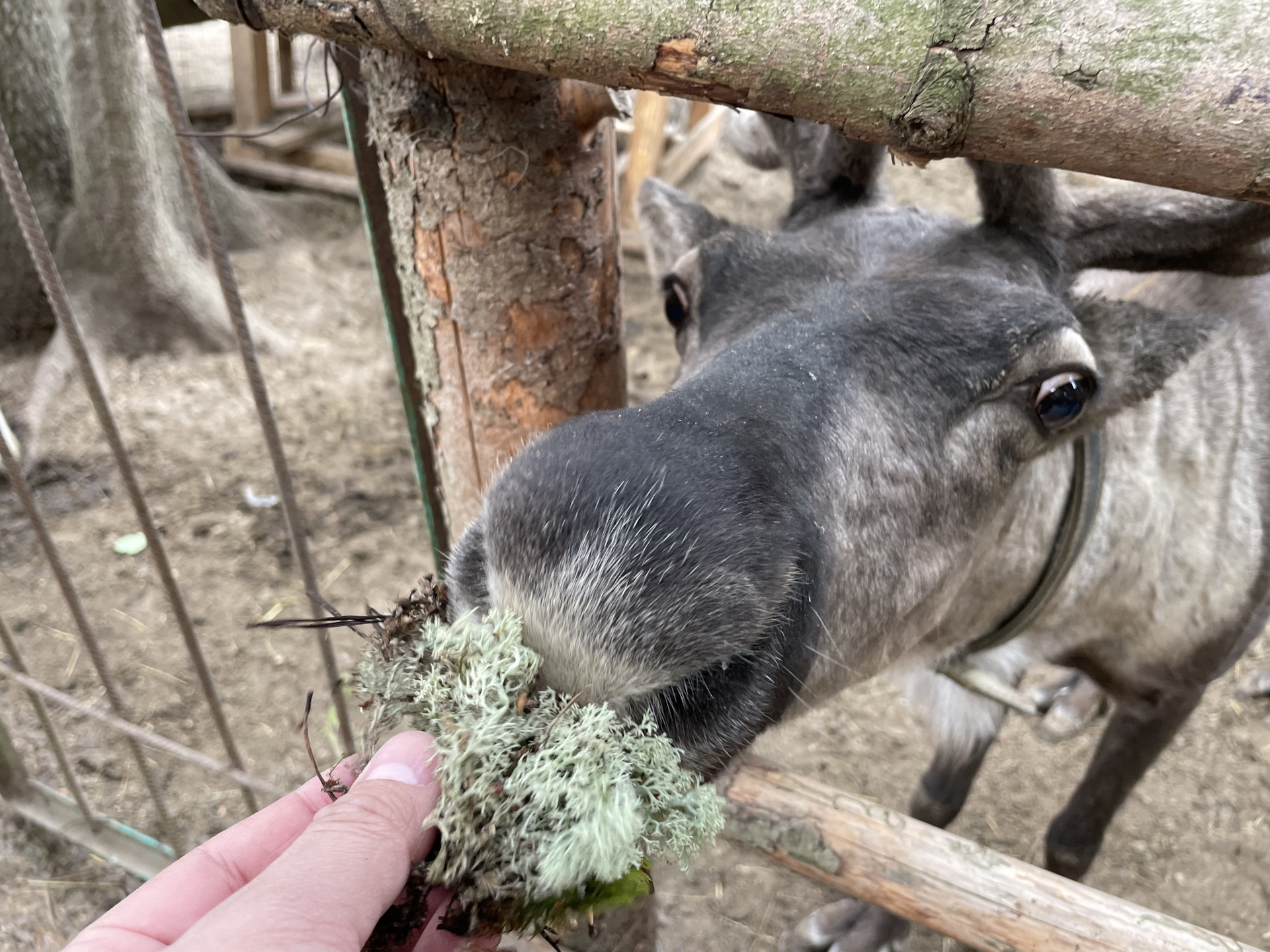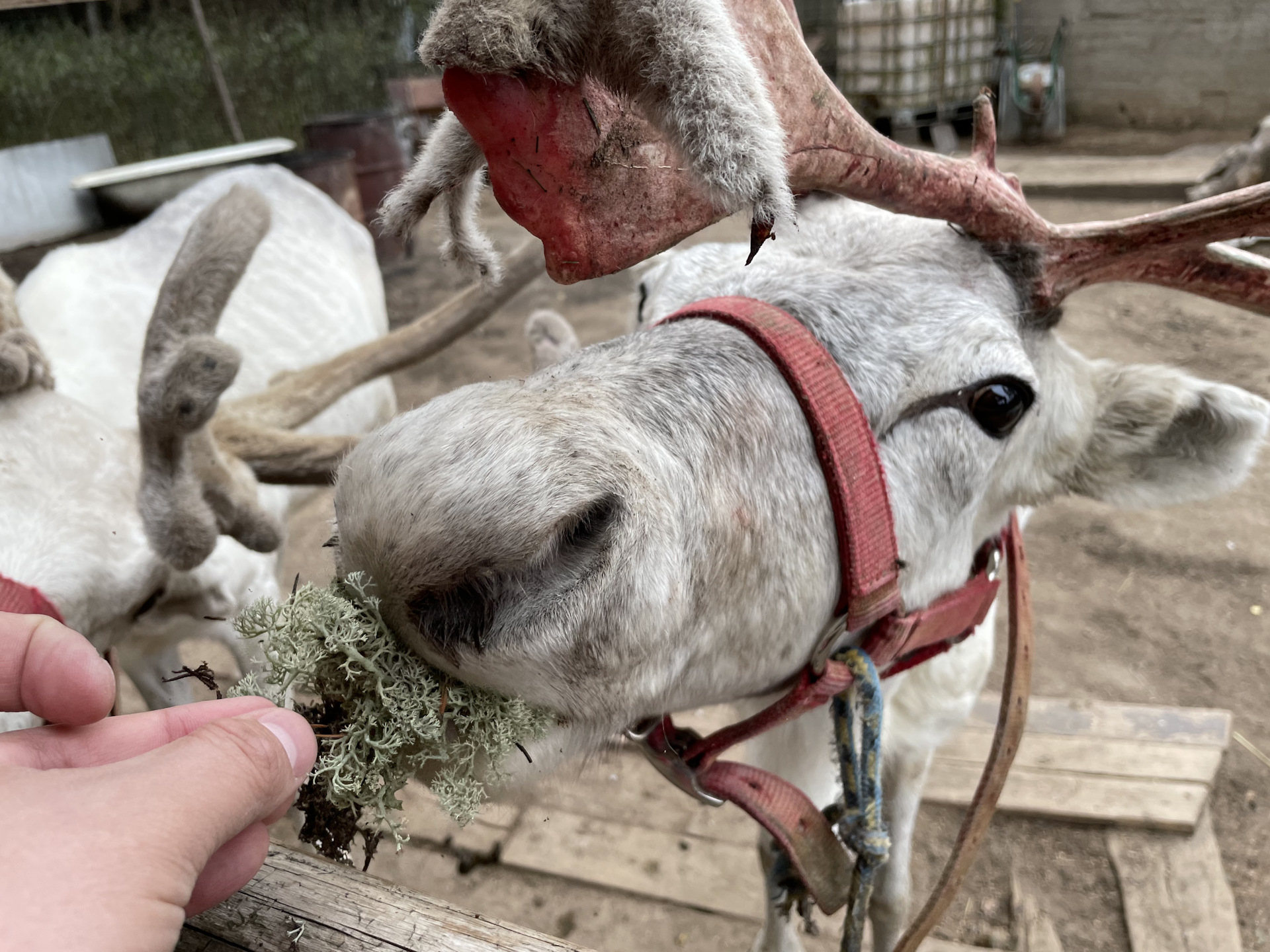 Можно заплатить 100 рублей за тарелку ягеля, после чего тебя закрывают в загоне, из которого ты кормишь свободных и гордых оленей :)