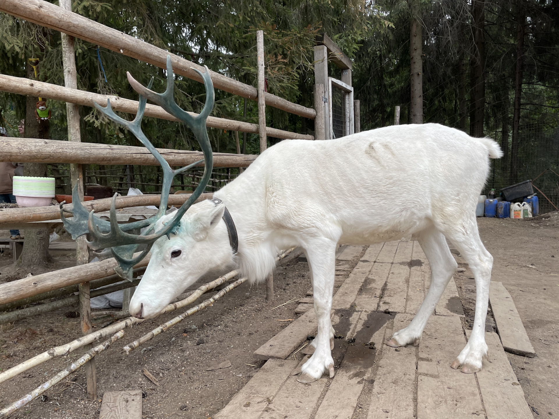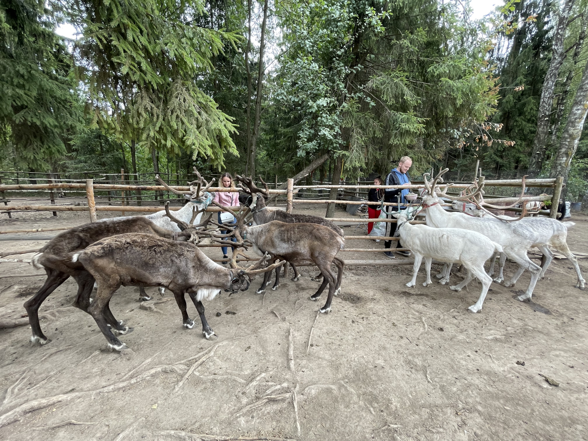 Платим 500 рублей с человека за вход и попадаем в царство свободно разгуливающих оленей: