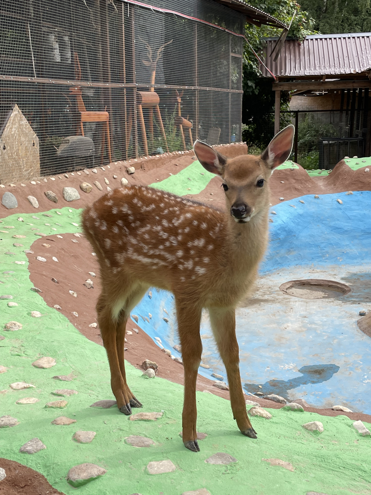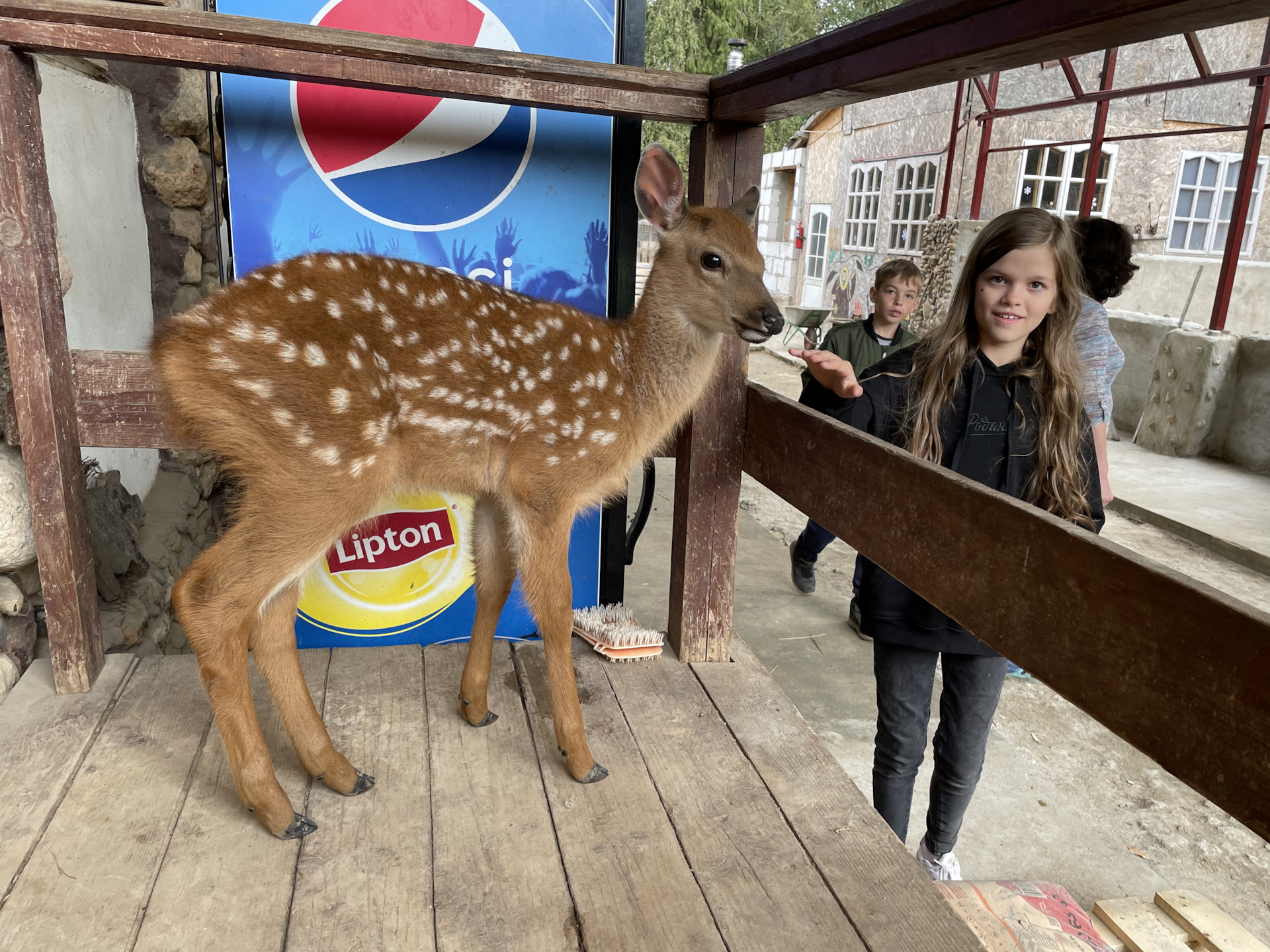 Пройдя через калитку дальше, попадаешь на территорию пятнистых оленей!