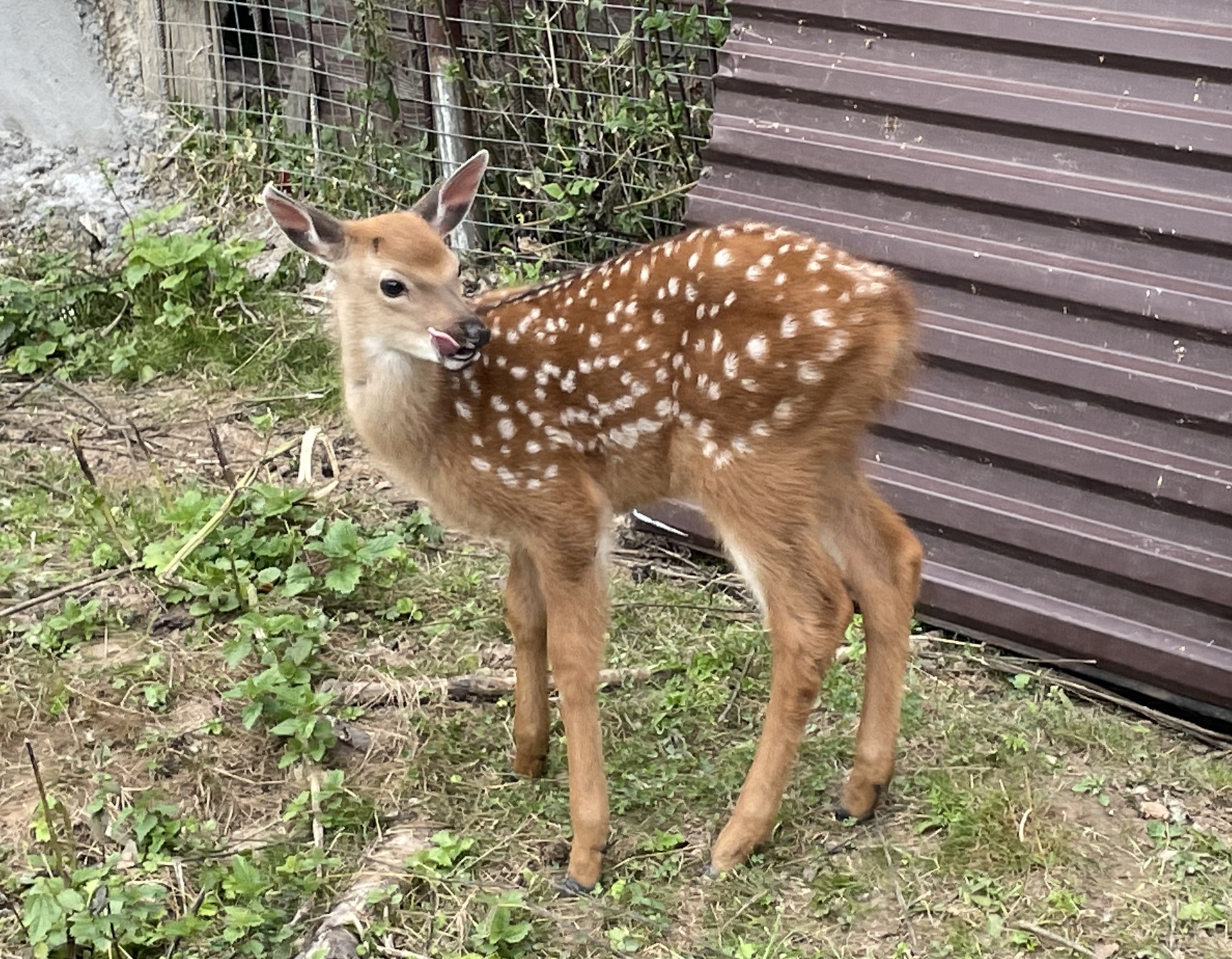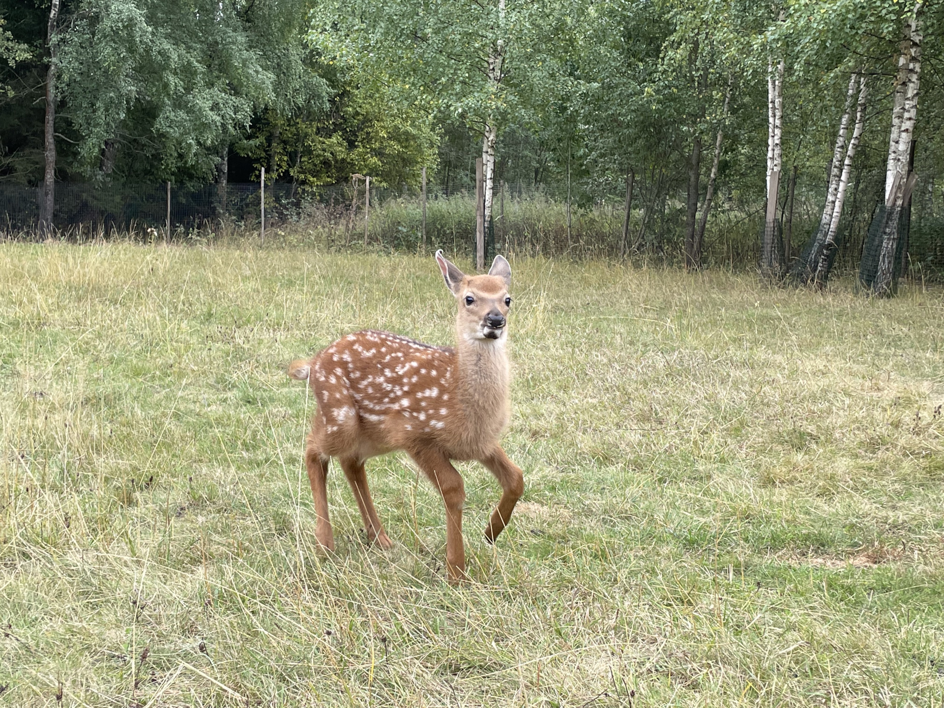 За маленьким олененком (по кличке "Июльчик", рожден 29 июля) я решил начать фотоохоту — слишком уж он хорош, а на фокусное расстояние не подпускает, сразу бежит :)