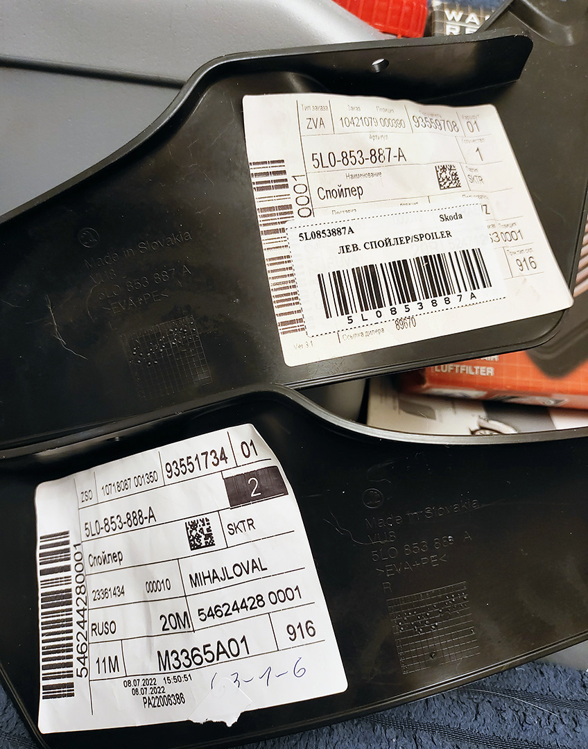 Спойлеры менял парой, левый старый оставил лежать в загашничке на всякий случай.
