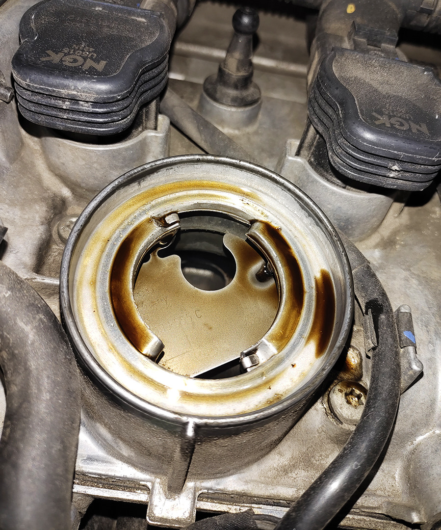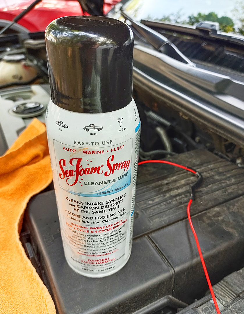 Задул оставшиеся пол баллона SeaFoam на ХХ, давя периодически до 4000 оборотов. *Нужен напарник, жмущий по команде на педаль) Процедуру можно совместить с промывкой маслом. Повышение оборотов периодическое не помешает что для одного, что для другого процесса.