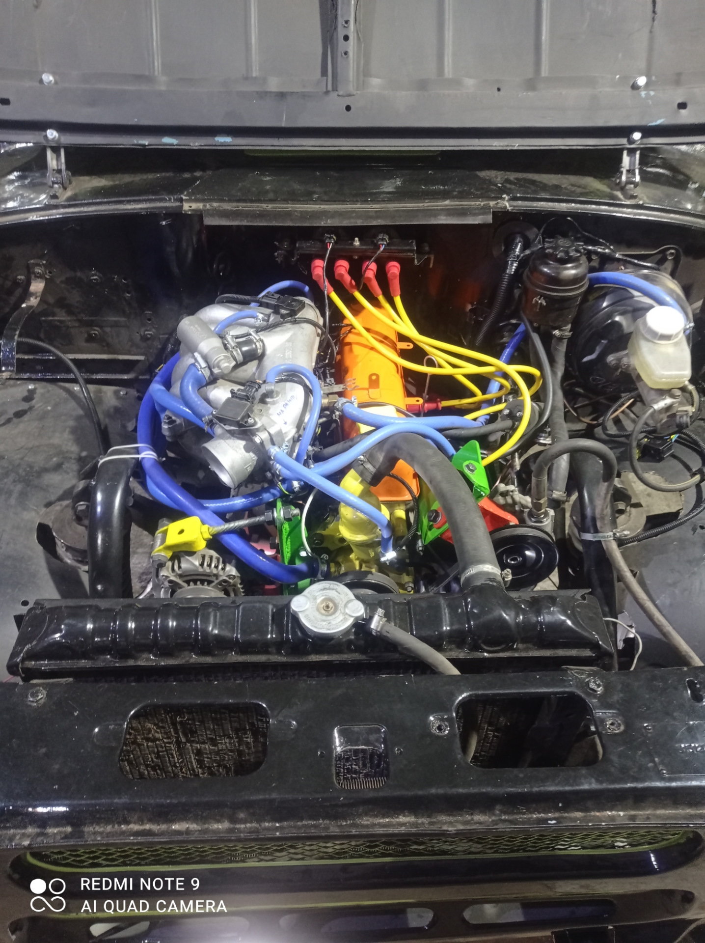 Затем пришло время навести порядок под капотом, двигатель давно уже стоял и оставалось навешать на него провода и шланги