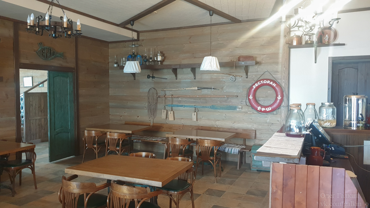 У пристани открыто кафе, называется «Ёрш». Довольно уютное:)