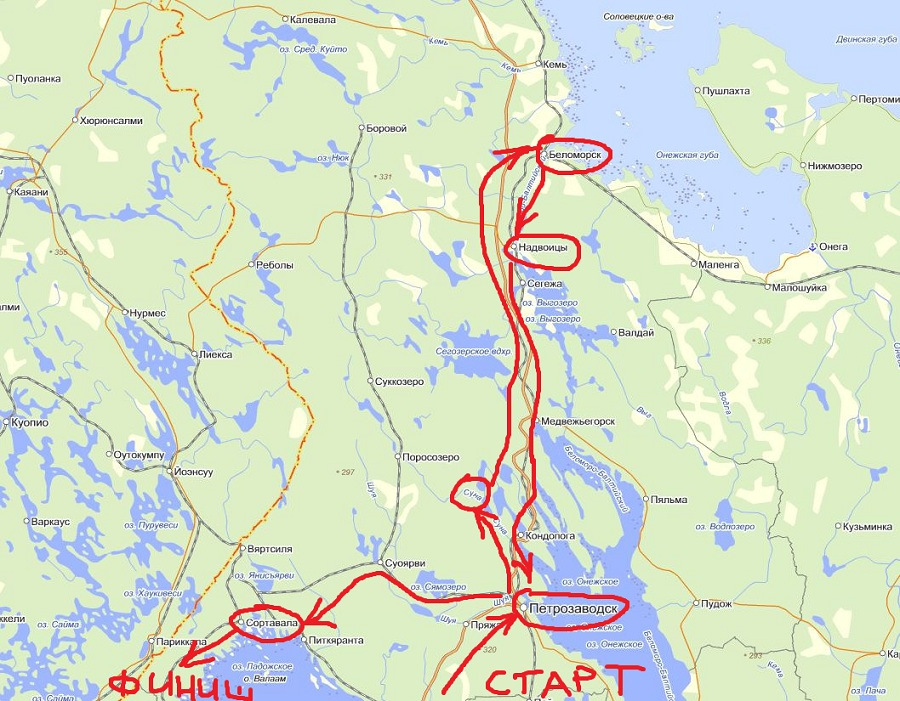 Карты есть, но неплохо бы карту всего маршрута с таймингами. Что-то например этой моей совсем не полной схемы, из совсем другой темы. Это набросок какого-то там по счету моего вояжа по Карелии.