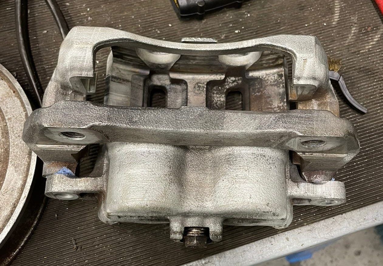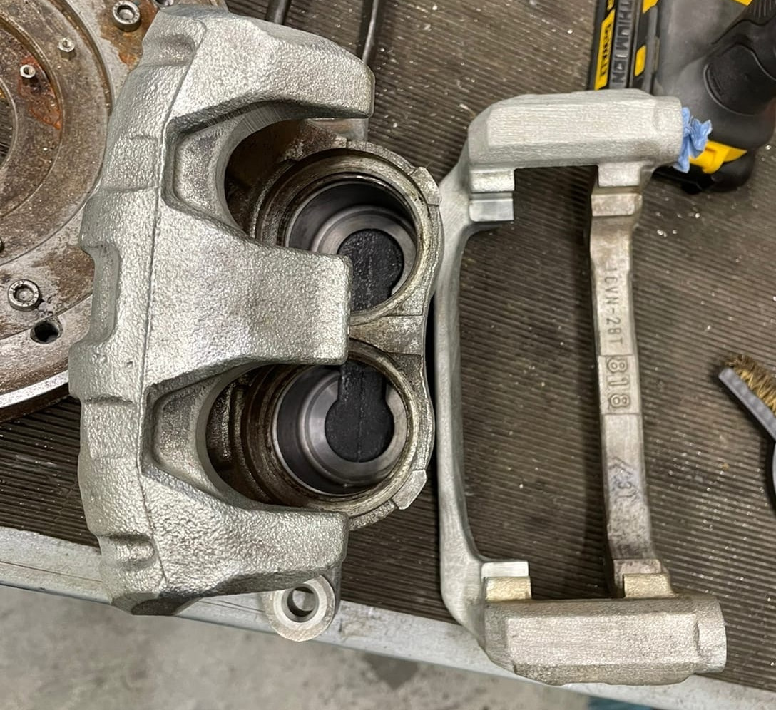 Итак предыдущая запись была про то как я купил двухпоршневые суппорты за 5500р. Также я писал, что после покупки сразу отнёс их на работу и начал перебирать. Сразу достал и почистил пальцы, они оказались в отличном состоянии, потом слил тормозуху из цилиндров и воздухом дунул в отверстие под шланг. Из одного суппорта поршни вышли моментально, оказались в идеальном состоянии — просто зеркало. Из второго поршни выходили тяжело, видимо манжета разбухла и оказались все в ржавчине. На этом мой рассказ закончился.