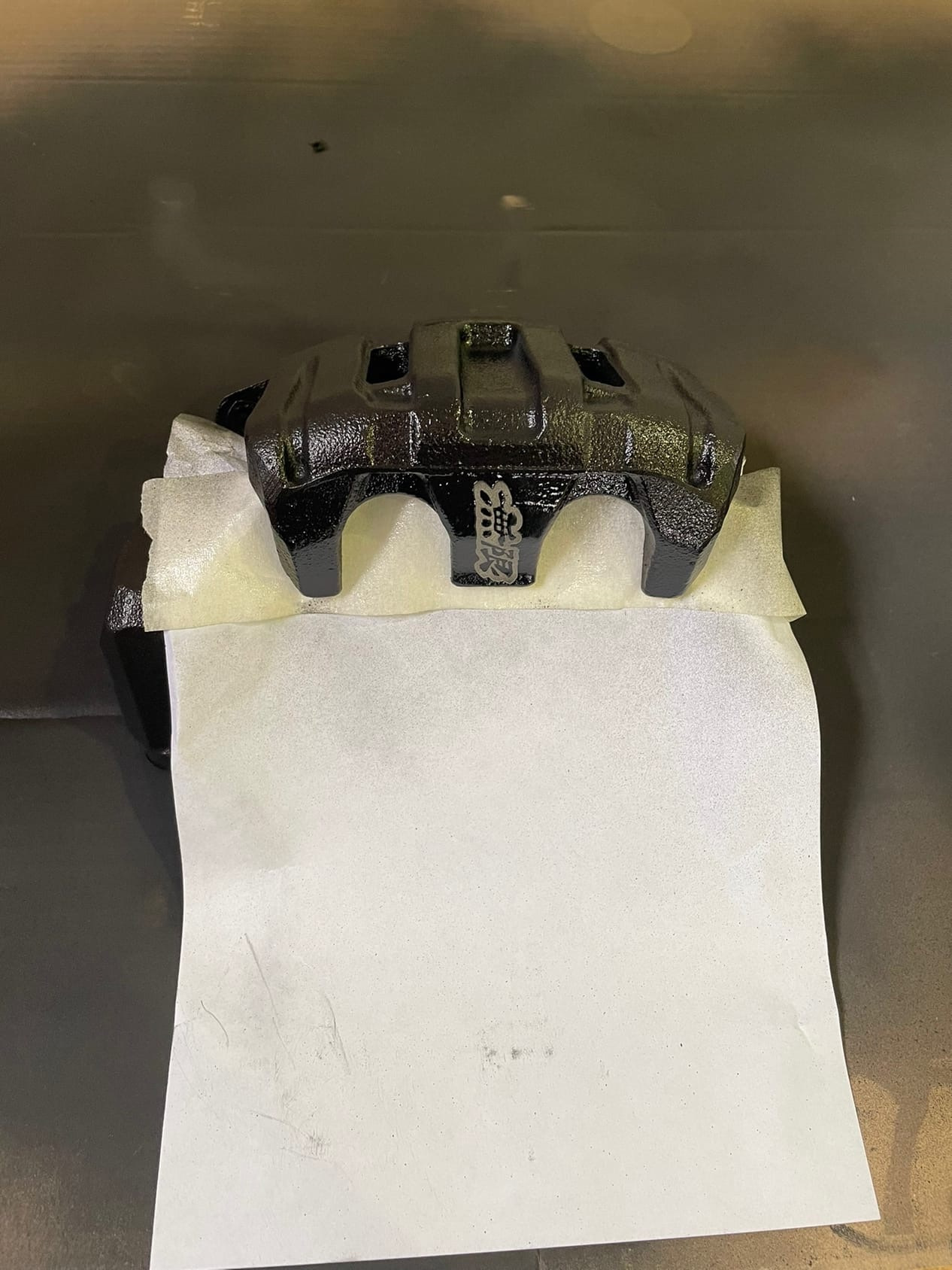 Когда краска высохла, начал думать, оставить чёрными или награвировать что-нибудь, пока лазер под рукой)) Думал награвировать "Honda", но у кого-то я такие суппорты уже видел, будет как бы плагиат. И потом вспомнил про иероглифы Mugen, именно "無限". Они обозначают "бесконечный" или "без границ", скорее всего колодки не нужно будет менять и обслуживать ))))) Это конечно шутка, но думаю будет выглядеть красиво и таких я точно ещё не видел. Сказано — сделано, тем более всегда можно смыть краску и покрасить заново. Режу на малой мощности — получается отлично и дальше на полной мощности в разных режимах сделал гравировку.