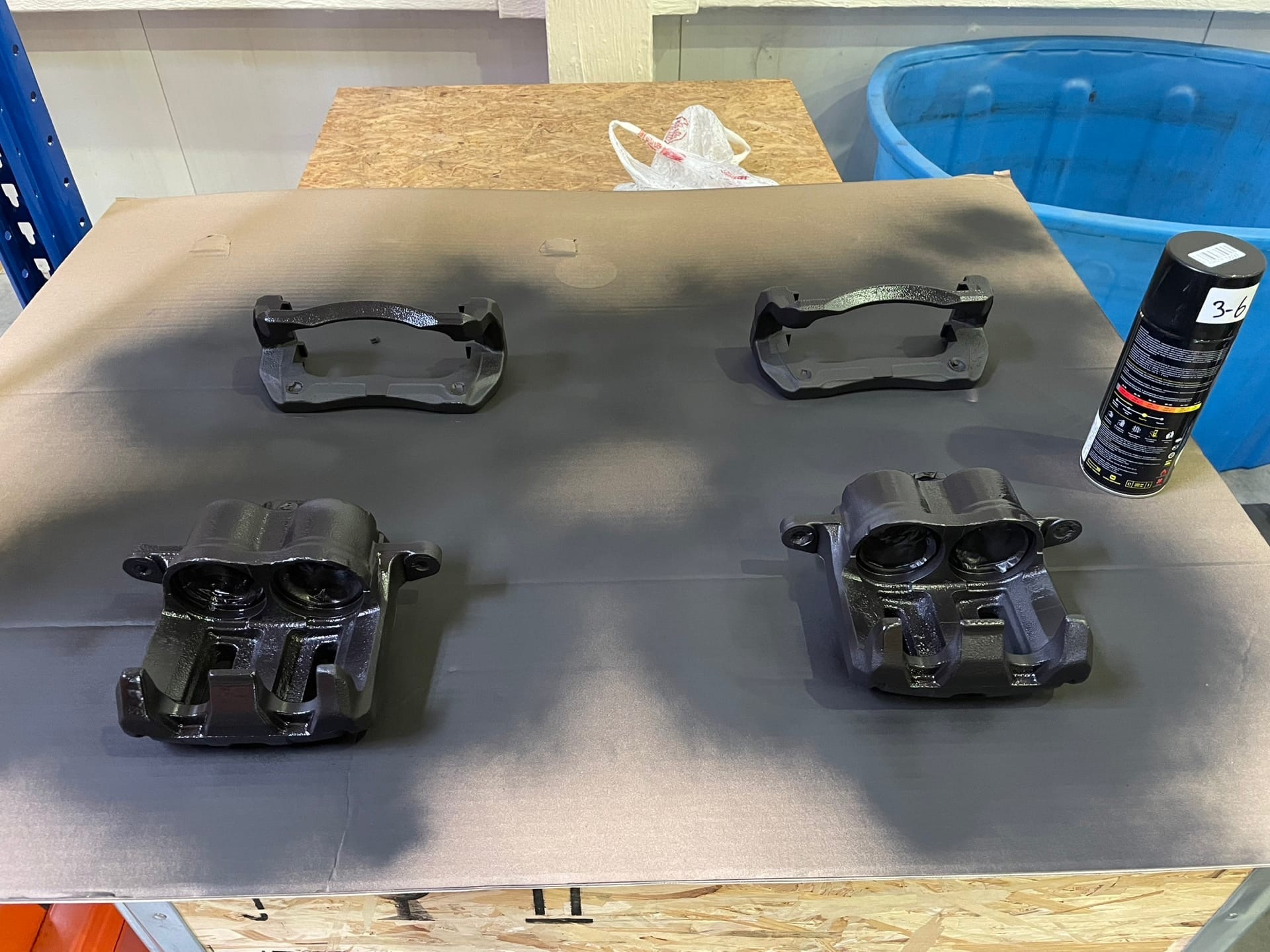 На следующий день пришла краска и лак, я заклеил все отверстия, чтобы не закрасить резьбы, цилиндры и пошёл красить) Чёрная краска легла как надо, красил в 3 слоя с перерывом в 15 минут, полное высыхание — 2 часа. Перевернул на другую сторону, так же 3 слоя и ждал 2 часа.
